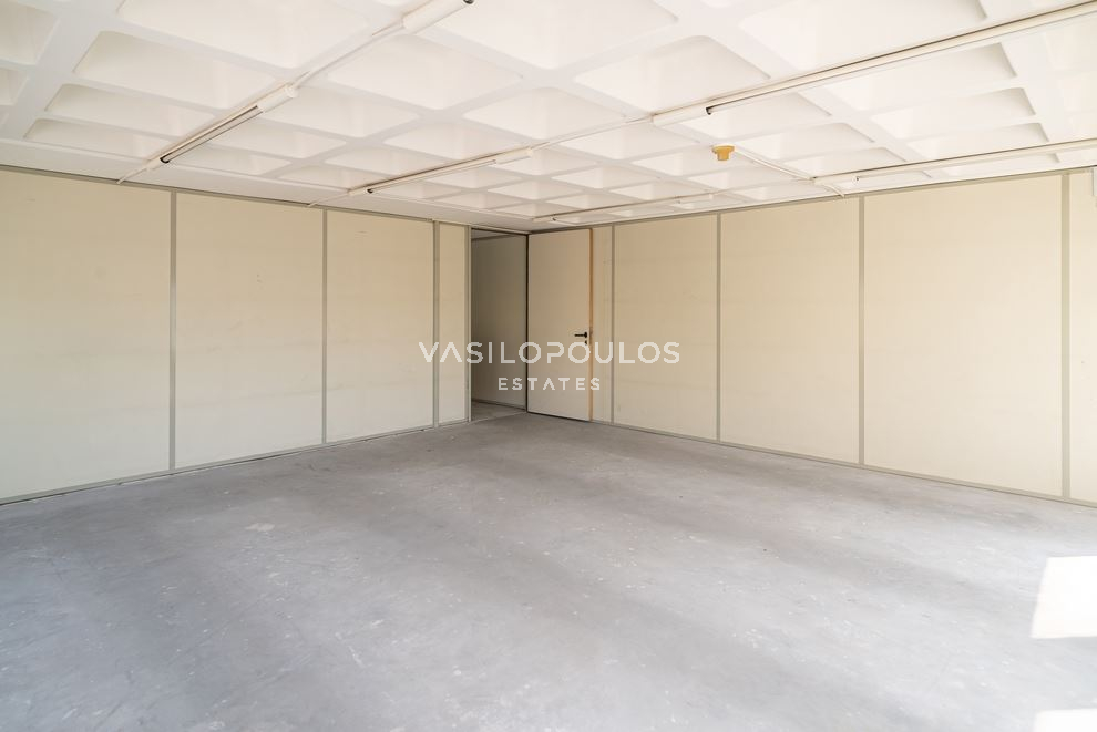 Αποθηκευτικός – βιομηχανικός χώρος 1.500 τ.μ. στον Άλιμο (Τράχωνες), προς ενοικίαση, με καθαρό ύψος 6 μ. και 300 τ.μ. γραφειακούς χώρους. Κατάλληλος για συνεργείο, γυμναστήριο, αποθήκη logistics ή ελαφριά βιοτεχνία.