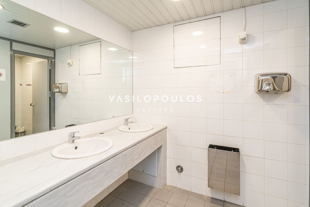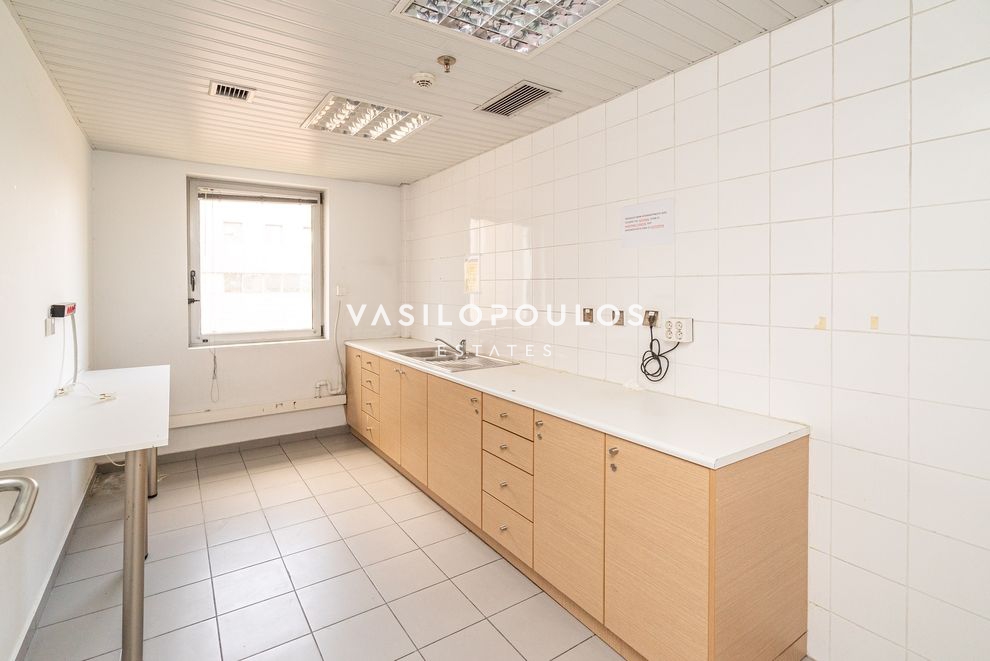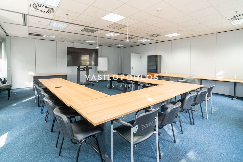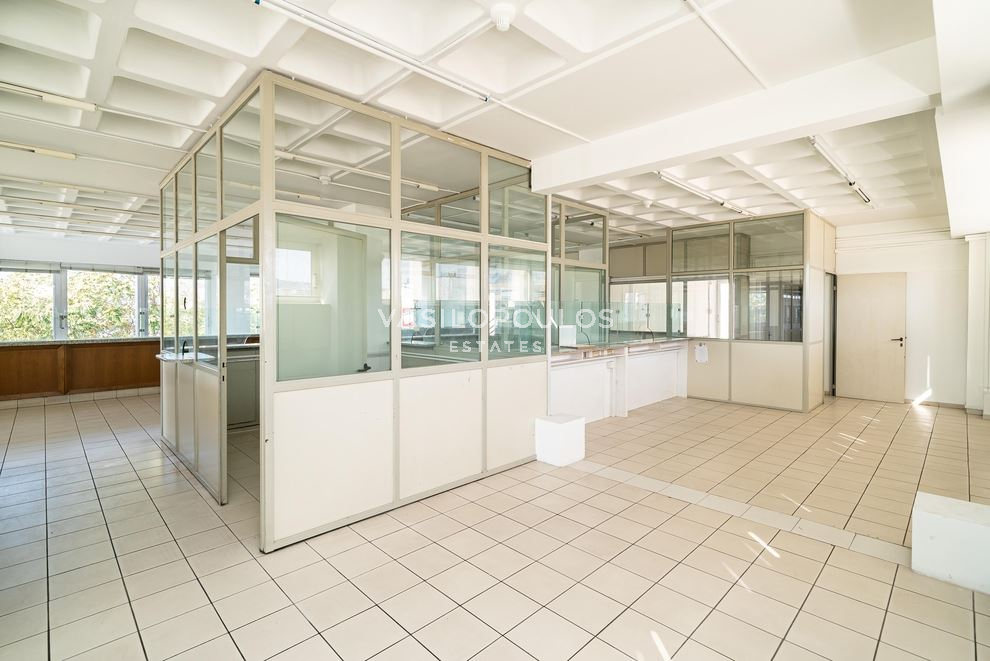 Κηφισιά, ισόγειο γραφείο 800 τ.μ. με 8 WC, μεγάλη κουζίνα, 10 αίθουσες συσκέψεων και κλειστά γραφεία με μοντέρνα χωρίσματα. Διαθέτει 7 θέσεις στάθμευσης και άμεση πρόσβαση μέσω παραδρόμου της Εθνικής Οδού.