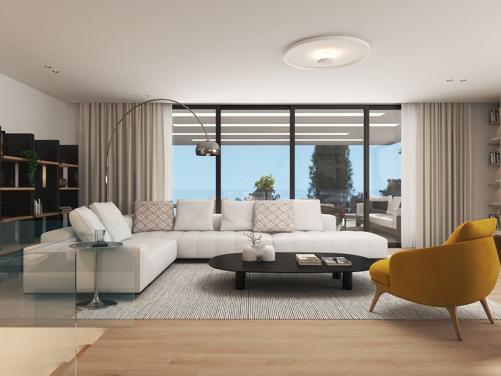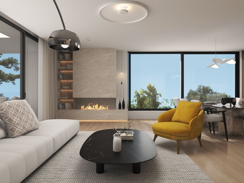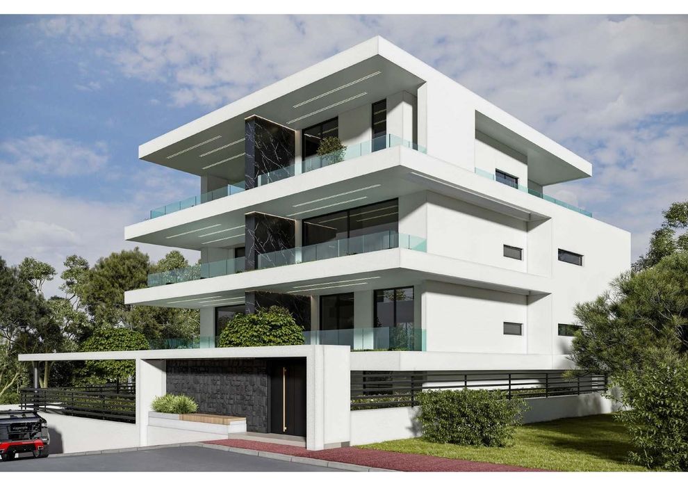 The under-construction apartment in Politeia features an open-plan living and kitchen area, two en suite bedrooms, and a guest WC. Large balconies provide comfort and beautiful views of the area’s lush greenery.
