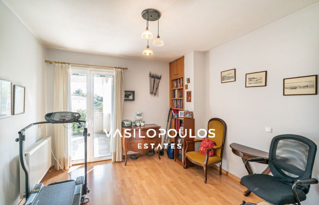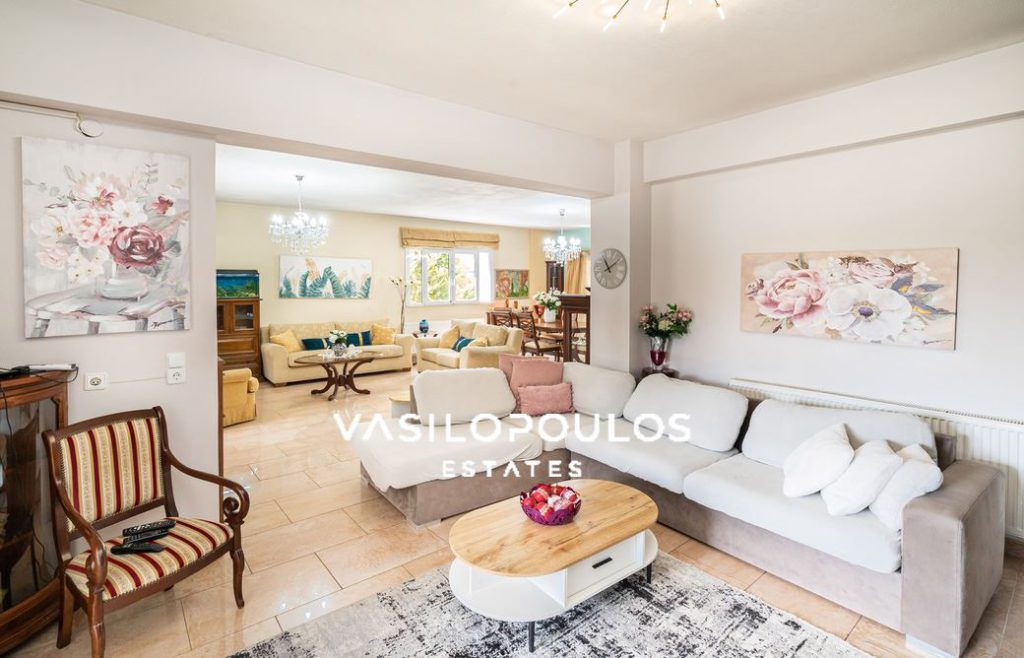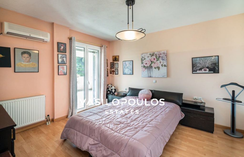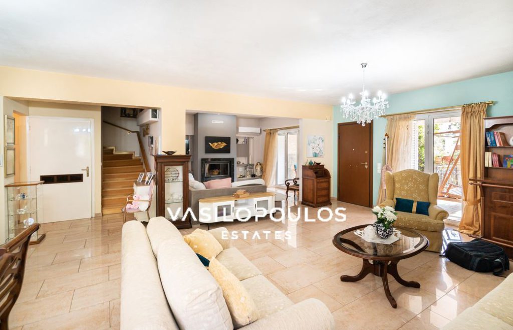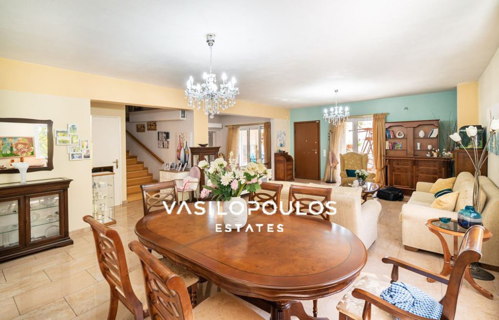 Στο επίπεδο του ισογείου έχει άνετους χώρους υποδοχής , σαλόνι με ενεργειακό τζάκι, καθημερινό καθιστικό, ξεχωριστή τραπεζαρία, κουζίνα και ένα wc επισκεπτών. Ο πρώτος έχει 4 υπνοδωμάτια εκ των οποίων το ένα είναι Master, ένα μπάνιο και laundry room.