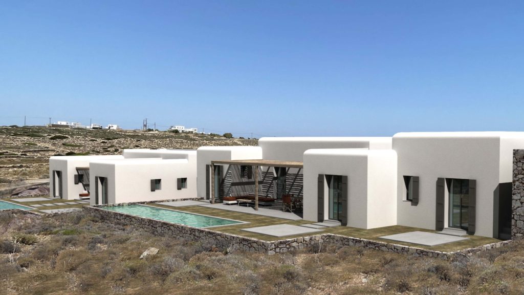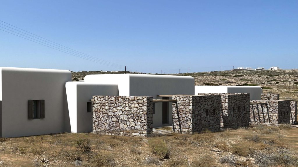 Η βίλα καλύπτει 112 τ.μ. και διαθέτει δύο υπνοδωμάτια και δύο μπάνια. Ο σχεδιασμός αξιοποιεί κάθε χώρο, με φυσικά υλικά και καθαρές γραμμές που δημιουργούν ζεστή και ευχάριστη ατμόσφαιρα. Τα μεγάλα ανοίγματα αφήνουν το φυσικό φως να γεμίσει το εσωτερικό και προσφέρουν ανεμπόδιστη θέα στο Αιγαίο και στους λόφους.