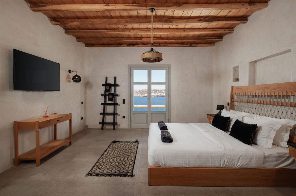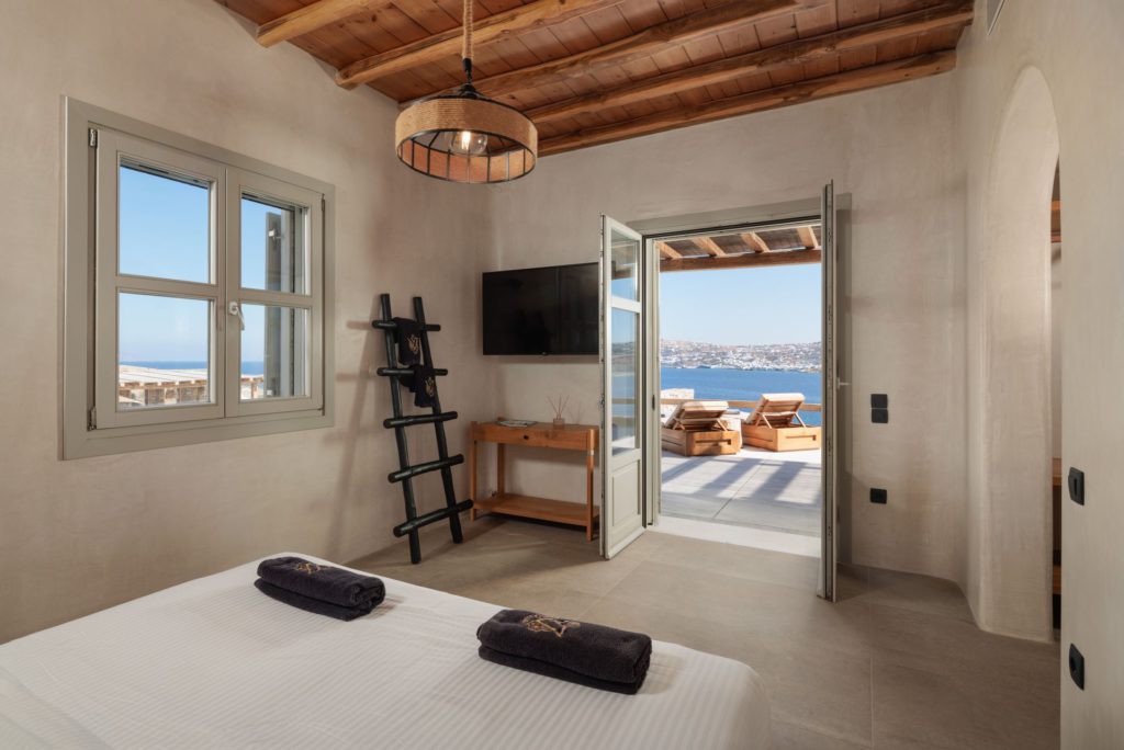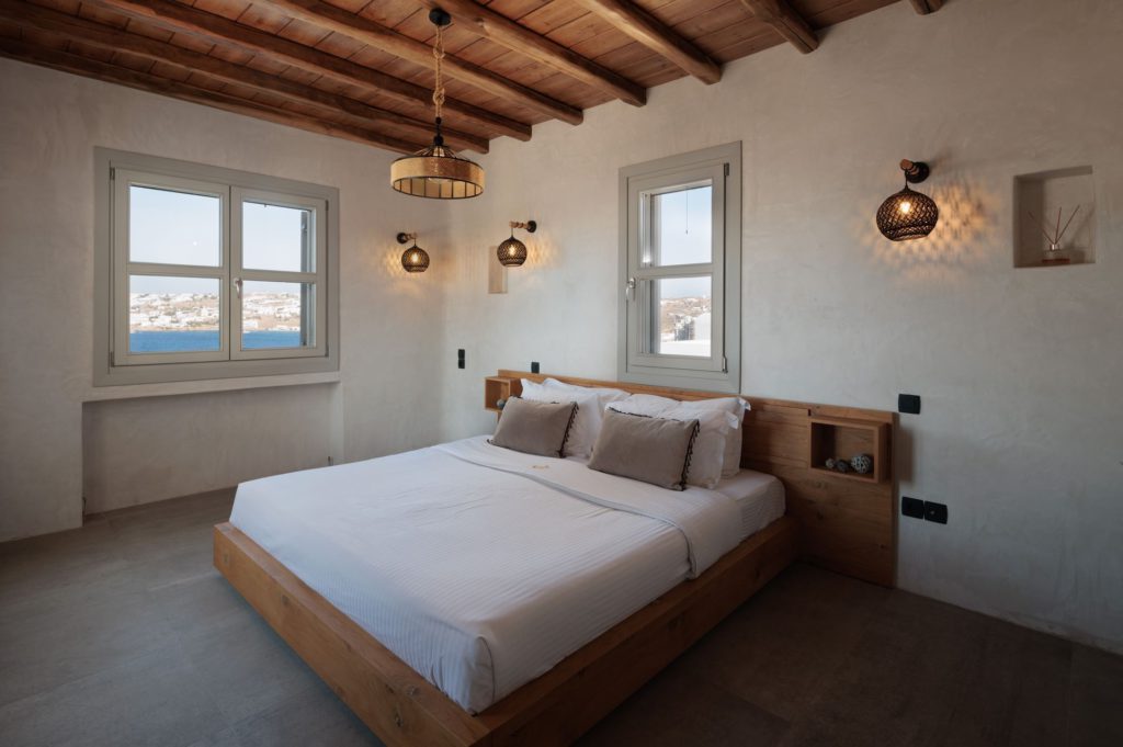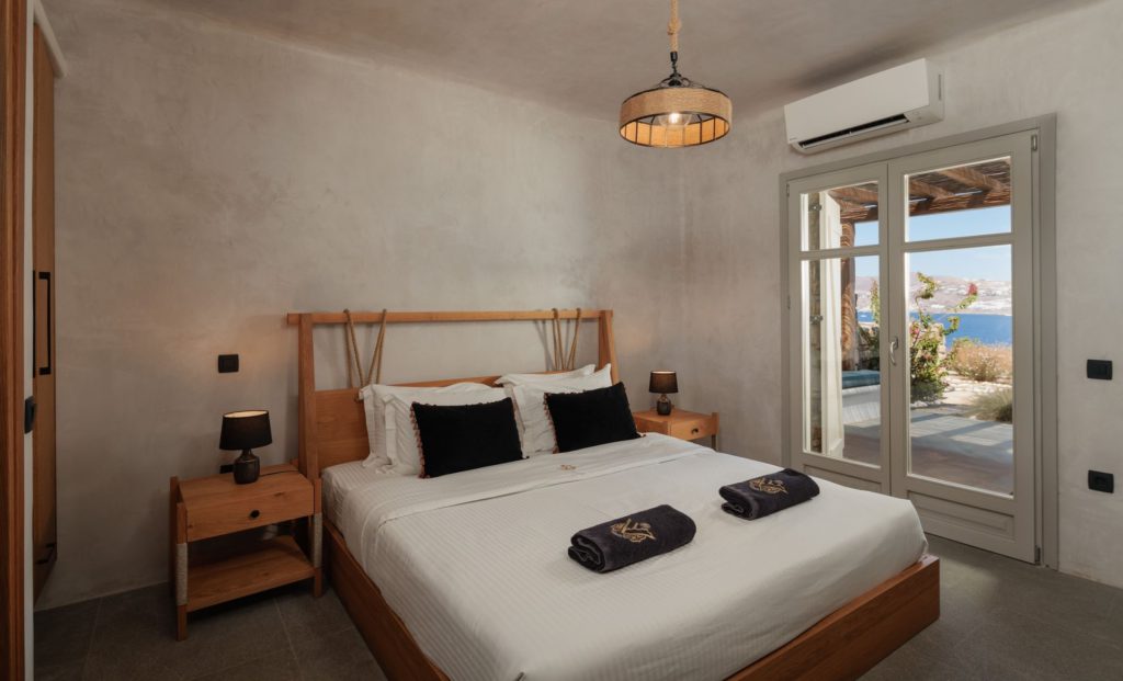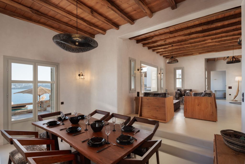 Το εσωτερικό των 620 τ.μ. αναδεικνύει μοντέρνα boho αισθητική και ξύλινες λεπτομέρειες. Τα επτά διπλά υπνοδωμάτια με ιδιωτικά μπάνια είναι διαμορφωμένα για απόλυτη άνεση, ενώ ο χώρος spa με εσωτερικη πισίνα προσφέρει στιγμές χαλάρωσης υψηλού επιπέδου. Η πλήρως εξοπλισμένη κουζίνα και οι ευρύχωροι χώροι καθιστικού ολοκληρώνουν την εμπειρία πολυτελούς διαβίωσης. Η Βίλα Black Pearl προς πώληση στη Μύκονο είναι μια μοναδική επιλογή για όσους αναζητούν εκλεπτυσμένο ακίνητο στο νησί, συνδυάζοντας θέα, πολυτέλεια και ιδιωτικότητα. Τιμή: 6.000.000 €.