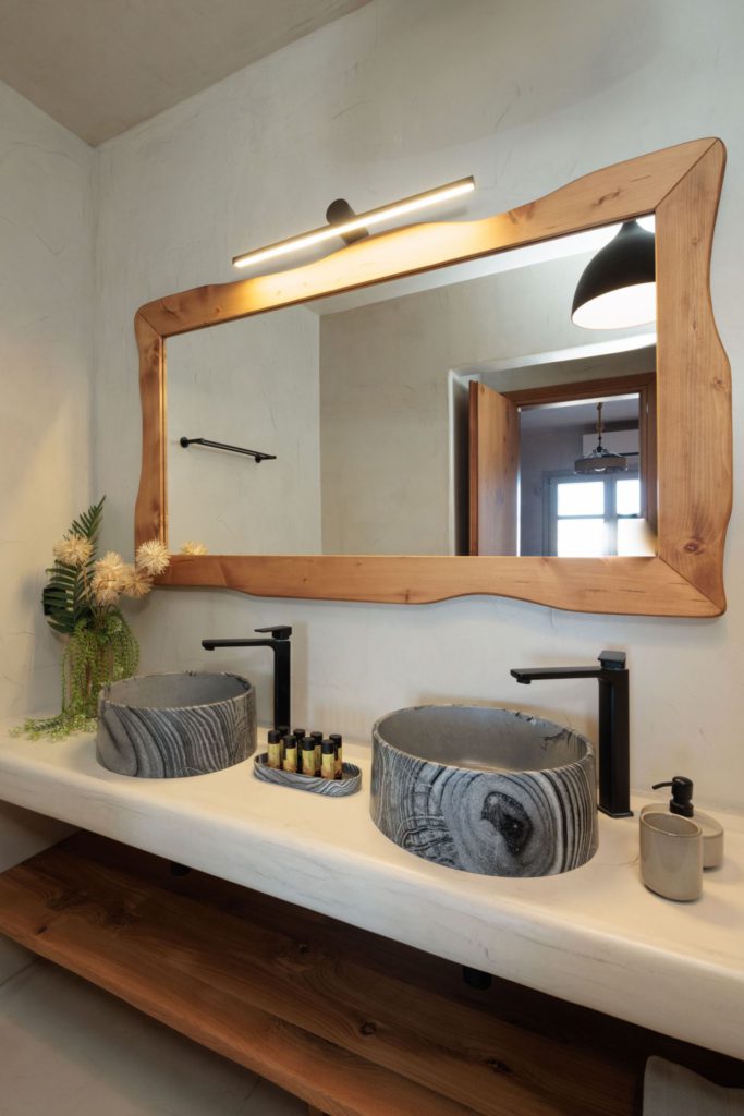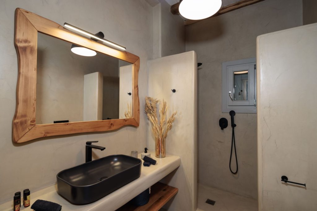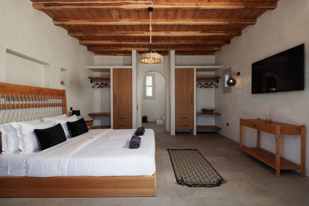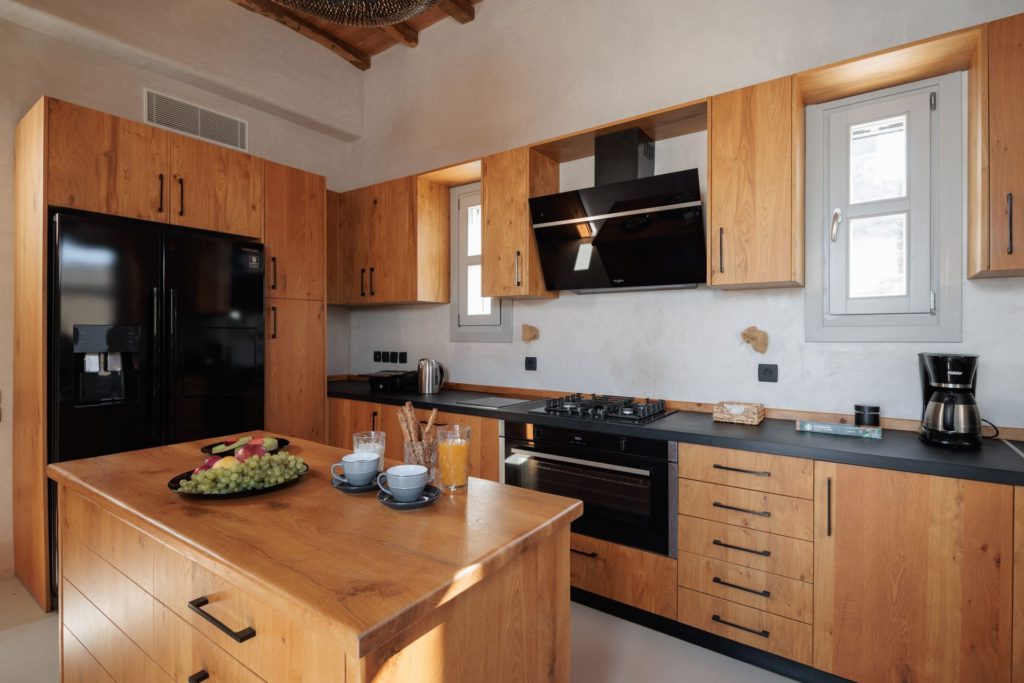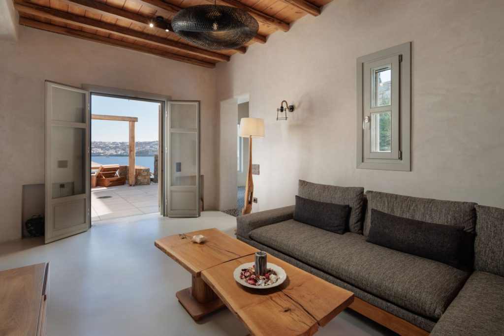 Το εσωτερικό των 620 τ.μ. αναδεικνύει μοντέρνα boho αισθητική και ξύλινες λεπτομέρειες. Τα επτά διπλά υπνοδωμάτια με ιδιωτικά μπάνια είναι διαμορφωμένα για απόλυτη άνεση, ενώ ο χώρος spa με εσωτερικη πισίνα προσφέρει στιγμές χαλάρωσης υψηλού επιπέδου. Η πλήρως εξοπλισμένη κουζίνα και οι ευρύχωροι χώροι καθιστικού ολοκληρώνουν την εμπειρία πολυτελούς διαβίωσης. Η Βίλα Black Pearl προς πώληση στη Μύκονο είναι μια μοναδική επιλογή για όσους αναζητούν εκλεπτυσμένο ακίνητο στο νησί, συνδυάζοντας θέα, πολυτέλεια και ιδιωτικότητα. Τιμή: 6.000.000 €.