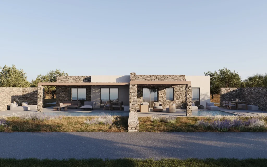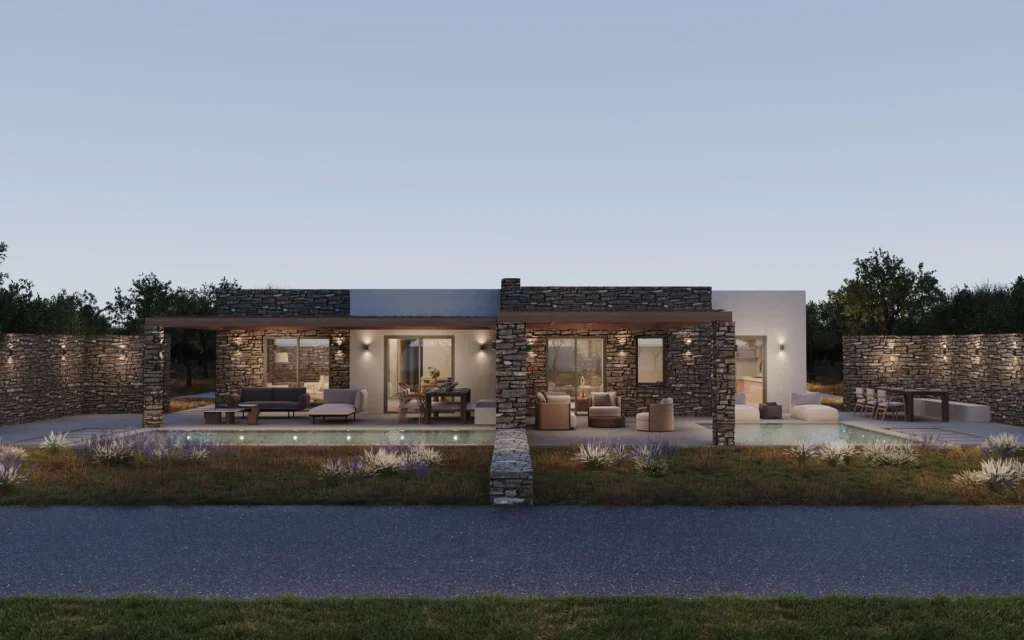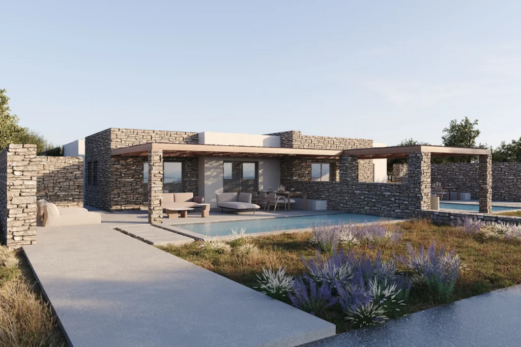 Στην καρδιά της περιοχής Αγίου Γεωργίου, οι Oceanique Villas αποτελούν σπάνιες βίλες προς πώληση στην Αντίπαρο, όπου η παραδοσιακή κυκλαδίτικη αρχιτεκτονική συναντά τη σύγχρονη κομψότητα. Οι εξωτερικοί χώροι έχουν σχεδιαστεί για απόλυτη χαλάρωση: μια εντυπωσιακή ιδιωτική πισίνα ενσωματώνεται αρμονικά με φυσική πέτρα και καθαρές γραμμές αρχιτεκτονικής, ενώ οι εκτεταμένες βεράντες προσφέρουν πανοραμική θέα στη θάλασσα. Κομψές ζώνες lounge και μια σκιασμένη τραπεζαρία alfresco δημιουργούν το ιδανικό περιβάλλον για χαλάρωση και αξέχαστες στιγμές.