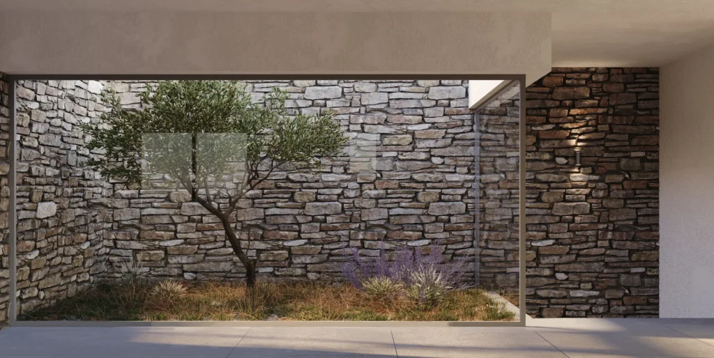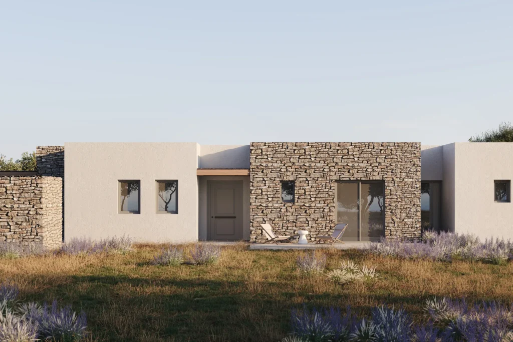 Κάθε βίλα διαθέτει τρία κομψά υπνοδωμάτια με en-suite μπάνιο. Μεγάλες τζαμαρίες πλαισιώνουν τη μαγευτική θέα, ενισχύοντας τη σύνδεση με το περιβάλλον. Οι προσεγμένες αρχιτεκτονικές λεπτομέρειες και η χρήση premium υλικών ολοκληρώνουν την ατμόσφαιρα πολυτέλειας.