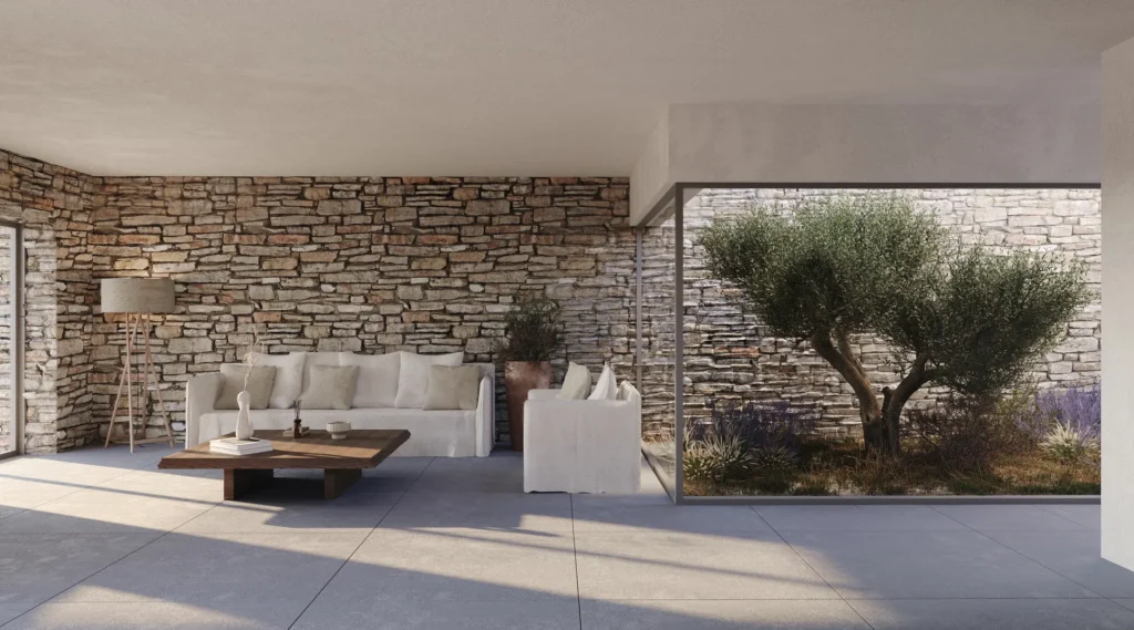 Στο εσωτερικό, η πολυτέλεια συνεχίζεται. Το συγκρότημα αποτελείται από δύο ανεξάρτητες βίλες, 145 τ.μ. και 144 τ.μ. αντίστοιχα, προσφέροντας άνεση, ιδιωτικότητα και κομψότητα. Οι φωτεινοί, ενιαίοι χώροι καθιστικού υποδέχονται το φυσικό φως και συνδυάζουν μοντέρνα αισθητική με υψηλής ποιότητας υλικά. Η πλήρως εξοπλισμένη κουζίνα συνδυάζει λειτουργικότητα και design, ενώ ένα WC επισκεπτών προσφέρει επιπλέον ευκολία.