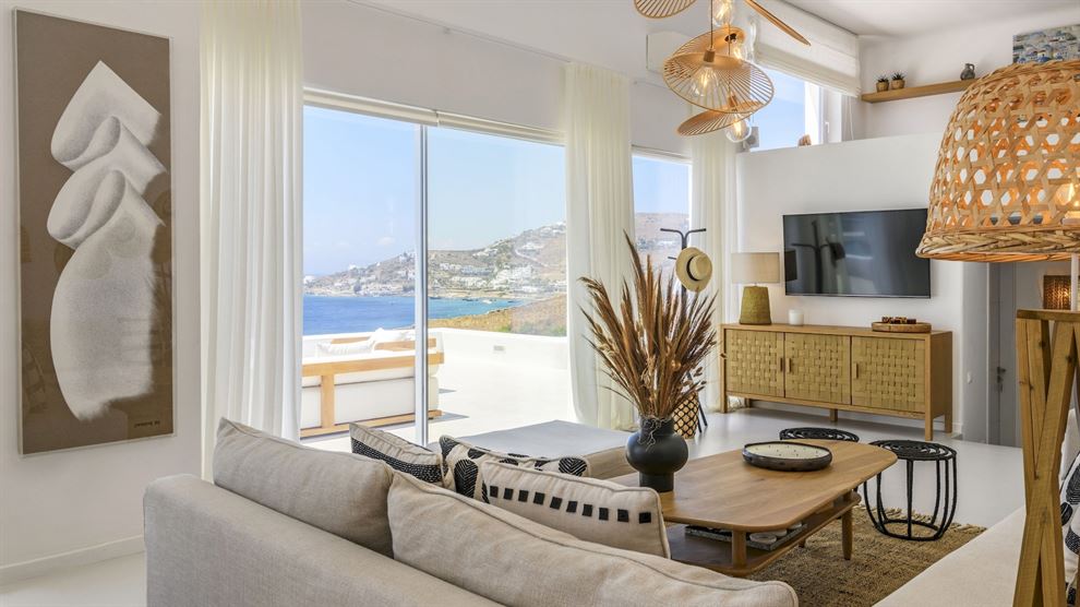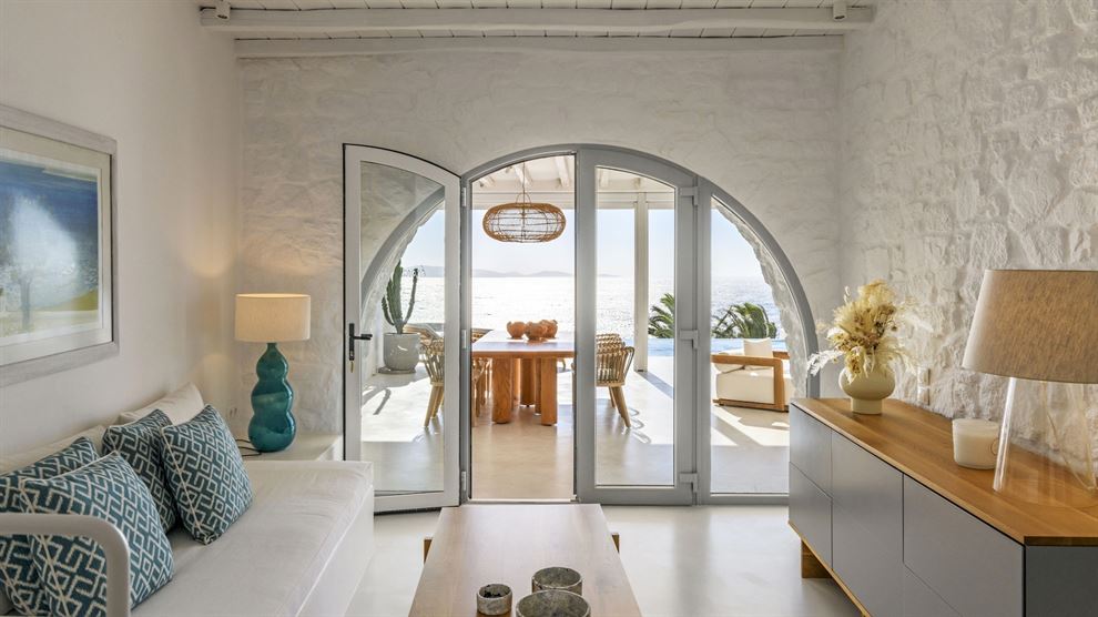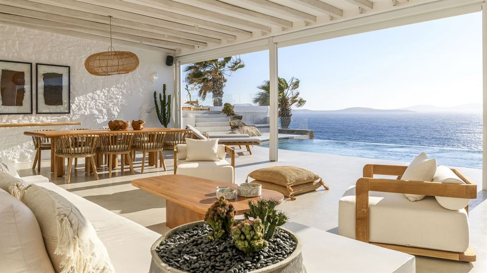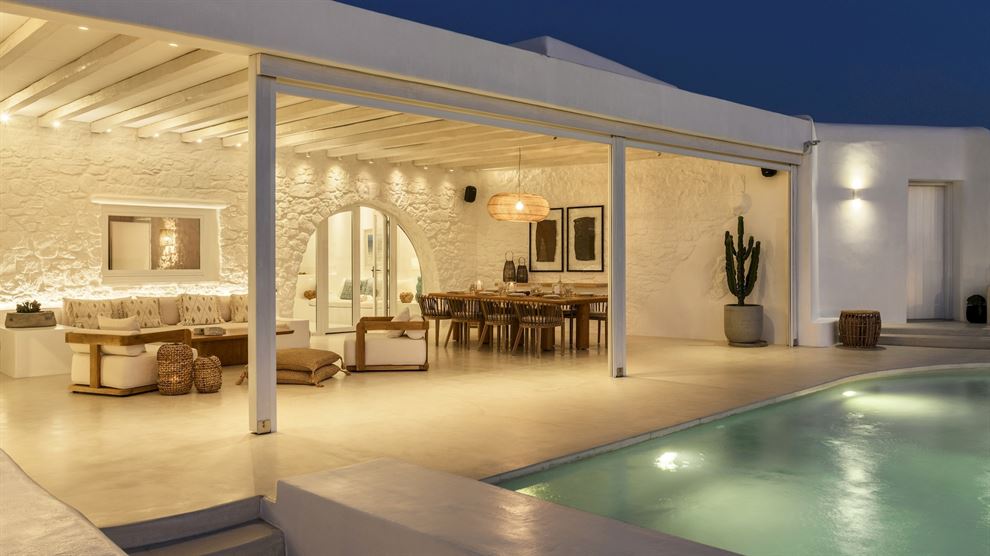 Εξερευνήστε τα ακίνητα της Μυκόνου με τη Villa Riva, ένα ολοκαίνουριο πολυτελές ακίνητο που προσφέρει εκπληκτική θέα στο Αιγαίο από τον Άγιο Ιωάννη. Αυτή η κομψή βίλα βρίσκεται μόλις λίγα βήματα από μια ήσυχη παραλία και κοντά στις πανέμορφες παραλίες του Ορνού και του Αγίου Ιωάννη. Επίσης, η γραφική πόλη της Μυκόνου, με τα στενά δρομάκια και τα ζωντανά μπαρ και εστιατόρια, είναι μόλις λίγα λεπτά με το αυτοκίνητο.