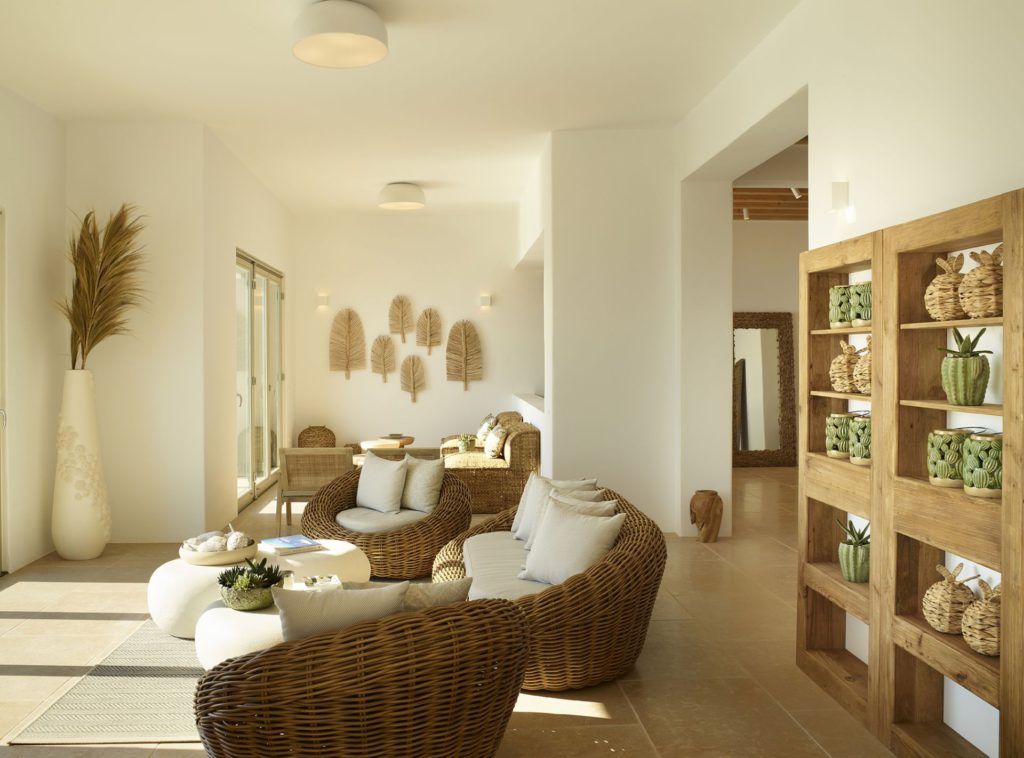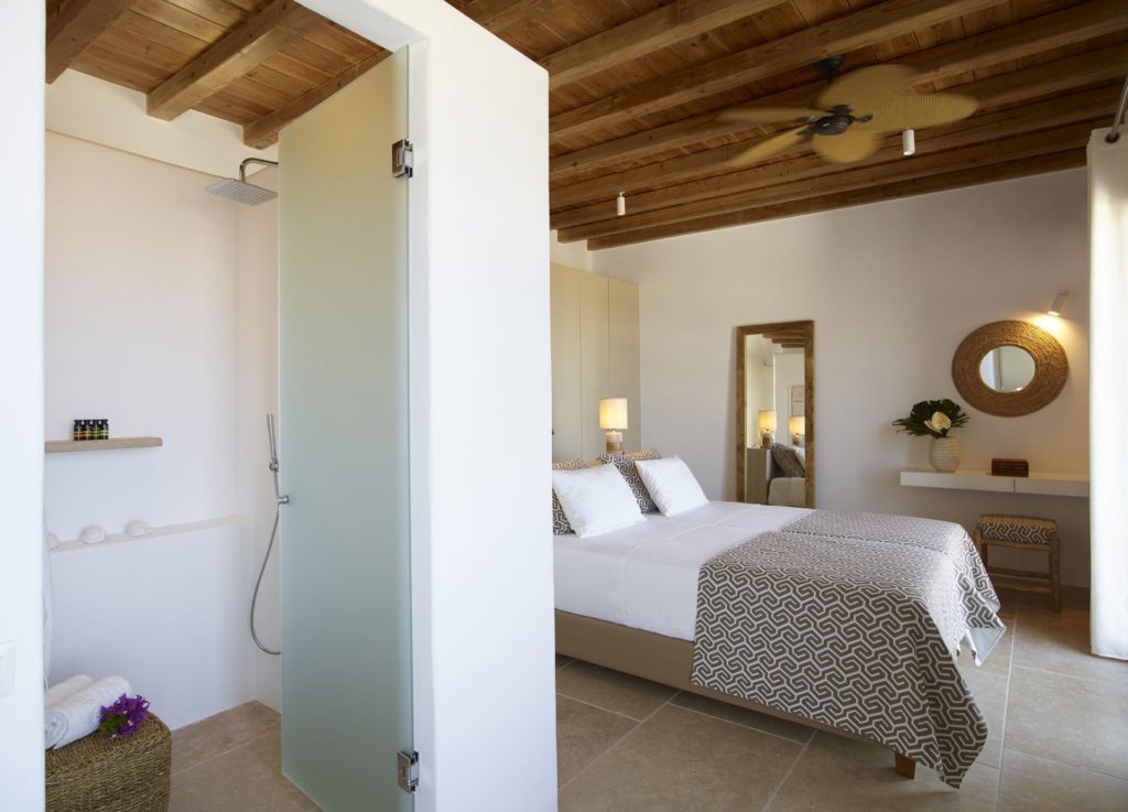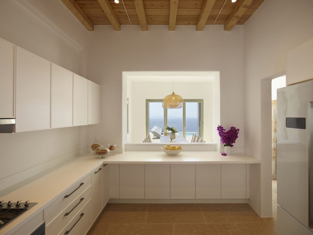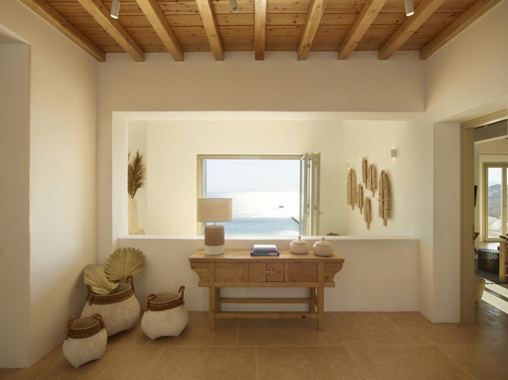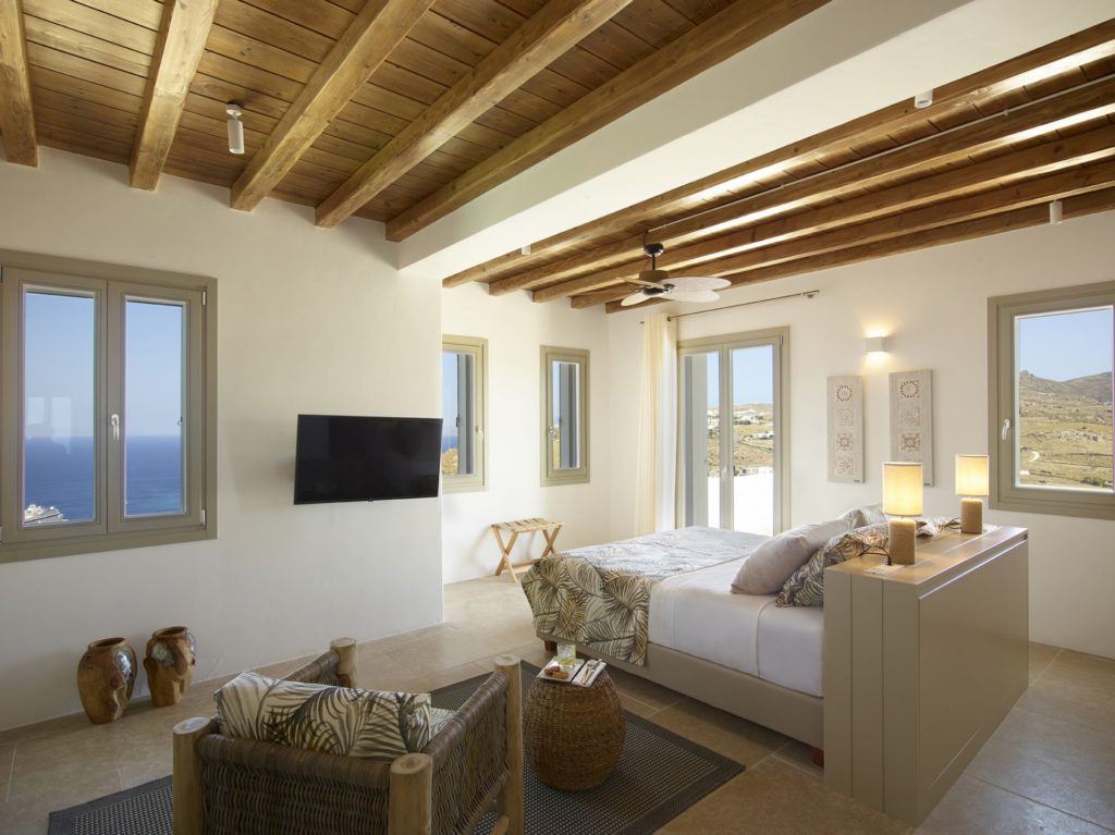 Στο εσωτερικό, η βίλα ξεχωρίζει για την υψηλή αισθητική και την πολυτελή επίπλωση. Υπάρχουν διάσημα κομμάτια σχεδιαστών και έργα τέχνης που δένουν αρμονικά με τους γαλήνιους λευκούς τόνους. Διαθέτει οκτώ άνετα υπνοδωμάτια με ensuite μπάνια, προσφέροντας πλήρη άνεση και ιδιωτικότητα.