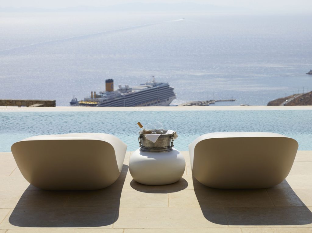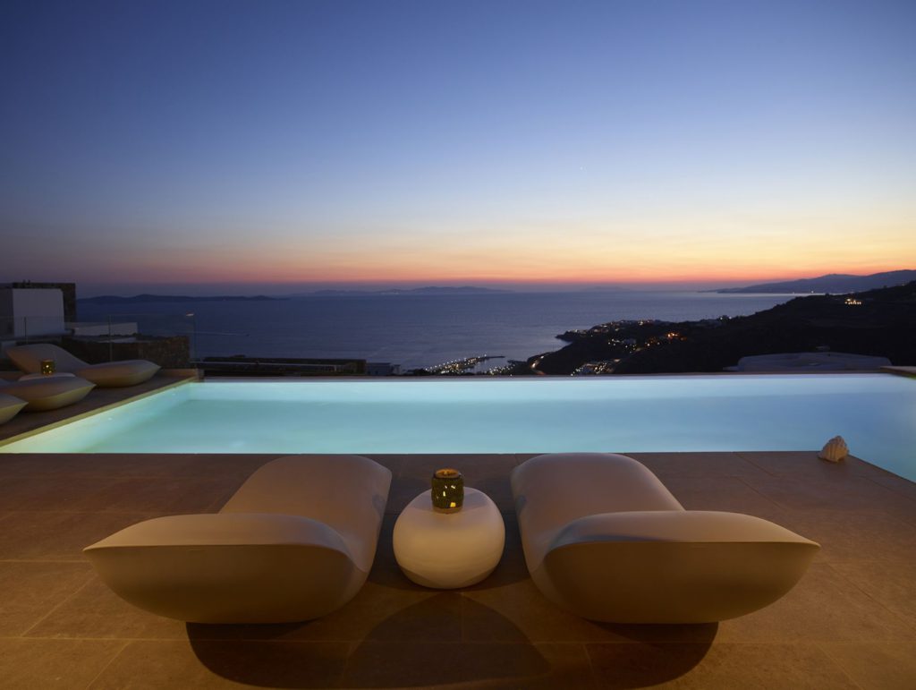 Η τοποθεσία της εξασφαλίζει πλήρη ιδιωτικότητα και ανεμπόδιστη θέα στο Αιγαίο. Περιβάλλεται από κομψές ξαπλώστρες, καθιστικό με πέργκολα και τραπεζαρία. για απολαυστικές στιγμές κάτω από τον ήλιο ή τα αστέρια. Η ατμόσφαιρα συνδυάζει χαλάρωση και πολυτέλεια, δημιουργώντας το ιδανικό περιβάλλον για αξέχαστες διακοπές.