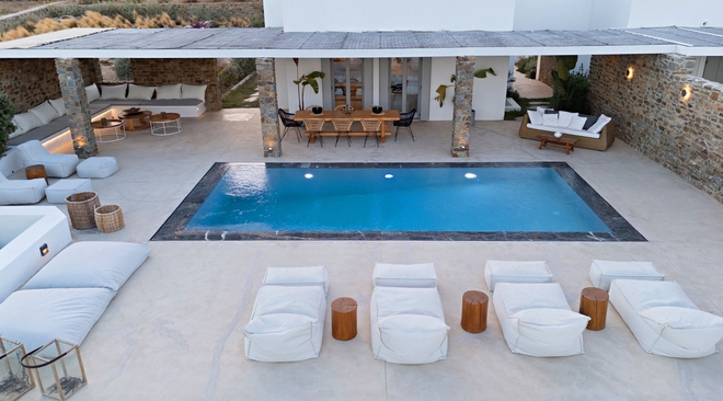 Κάθε βίλα απολαμβάνει πανοραμική θέα στη θάλασσα και πλήρη ιδιωτικότητα. Στο εσωτερικό, έπιπλα υψηλής ποιότητας, φυσικά υλικά και καθαρές γραμμές δημιουργούν μια ήρεμη, μεσογειακή ατμόσφαιρα. Οι ευρύχωροι χώροι καθημερινής διαβίωσης ρέουν φυσικά προς τον εξωτερικό χώρο, όπου η ιδιωτική πισίνα αποτελεί το επίκεντρο του σπιτιού. Είτε χαλαρώνετε στον ήλιο είτε απολαμβάνετε δείπνο υπό τα αστέρια, κάθε στιγμή συνδυάζει κομψότητα και άνεση.