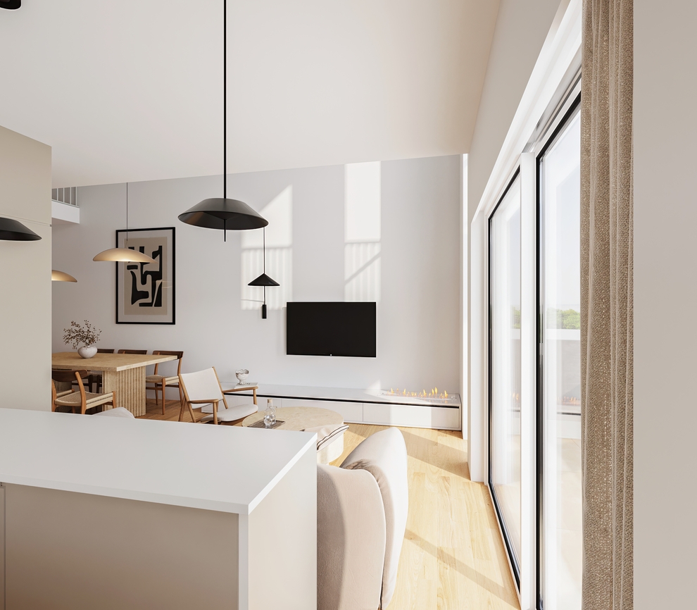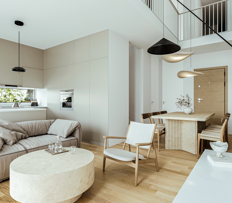 Το εσωτερικό περιλαμβάνει καθιστικό, τραπεζαρία και κουζίνα, τρία υπνοδωμάτια και δύο λουτρά, με χώρους διπλού ύψους που ενισχύουν την αίσθηση φωτεινότητας και άνεσης. Η μεζονέτα είναι προσόψεως, με έξυπνη διάταξη και σύγχρονες τεχνολογικές παροχές που αναβαθμίζουν την καθημερινή διαβίωση.
