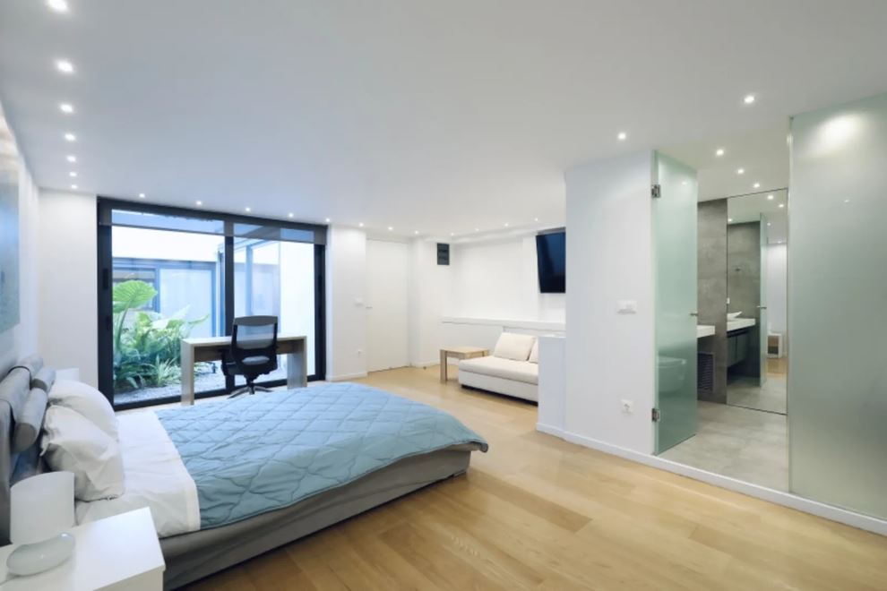 Επιπλέον, υπάρχουν προεγκαταστάσεις smart home, υψηλής ταχύτητας οπτικές ίνες και ενσύρματο δίκτυο. Τα ιταλικά είδη υγιεινής και οι εντοιχισμένες ηλεκτρικές συσκευές ολοκληρώνουν το πακέτο.