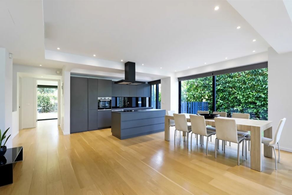 Στο ισόγειο είναι ο ενιαίος χώρος σαλονιού και τραπεζαρίας. Η μοντέρνα κουζίνα ολοκληρώνει τον χώρο με εργονομία και στυλ. Επίσης, υπάρχουν δύο υπνοδωμάτια με ιδιωτικά μπάνια και ένα WC επισκεπτών για μεγαλύτερη άνεση. Ο χαμηλότερος όροφος προσφέρει δύο ακόμα master υπνοδωμάτια με δικά τους μπάνια. Επιπλέον, υπάρχει ξεχωριστός ξενώνας, δεύτερη κουζίνα και ευρύχωρο playroom. Ο φωτεινός βυθισμένος κήπος προσφέρει φυσικό φως και εξαερισμό στο επίπεδο αυτό.
