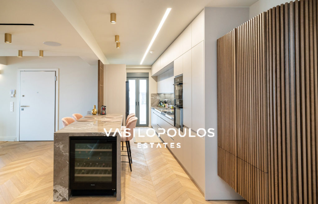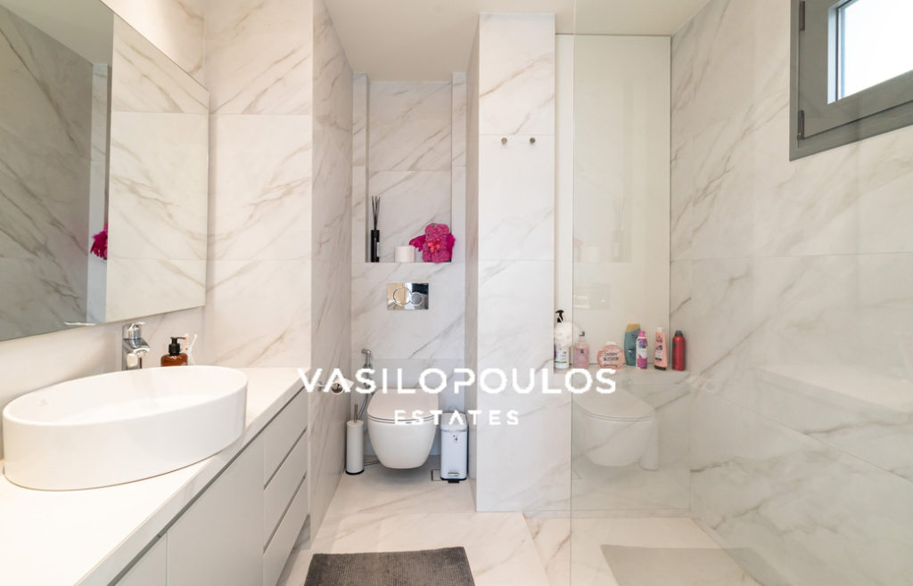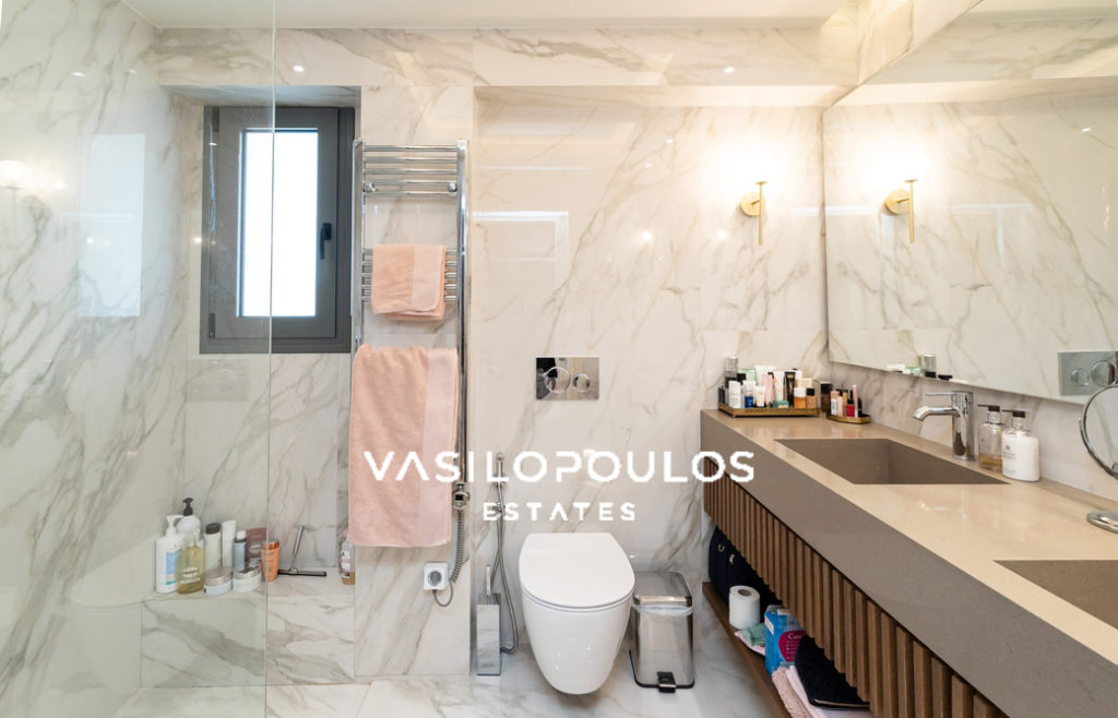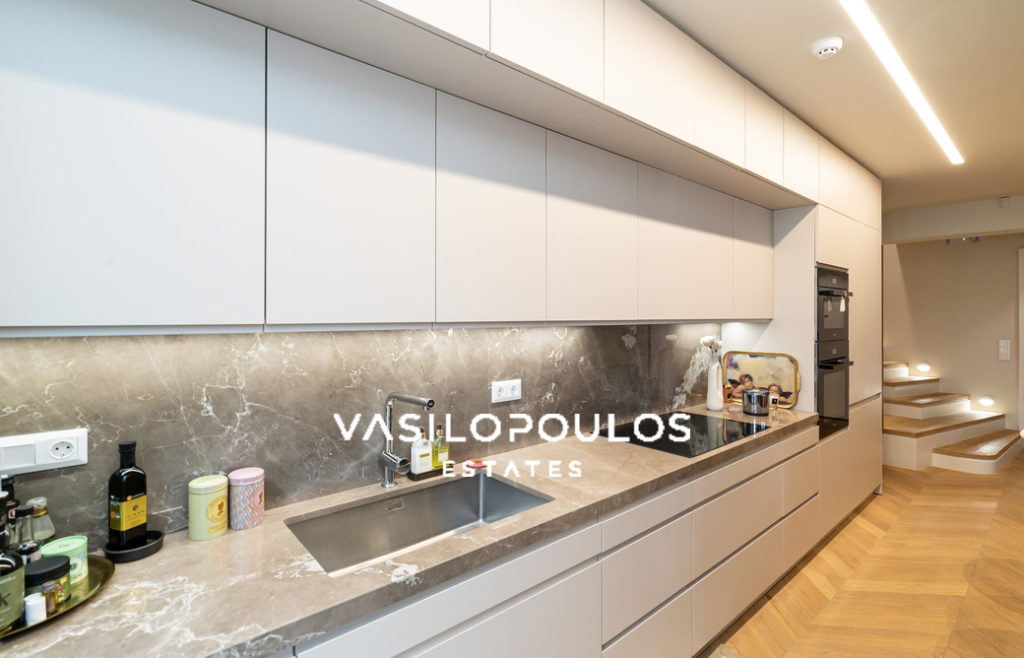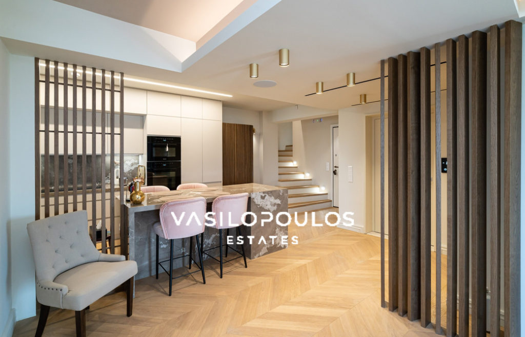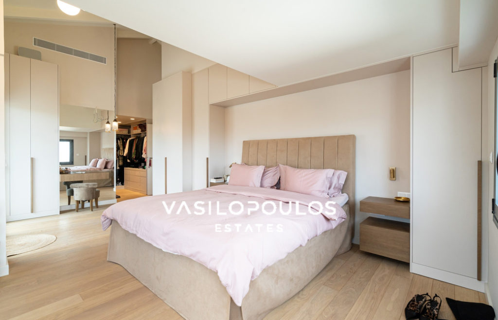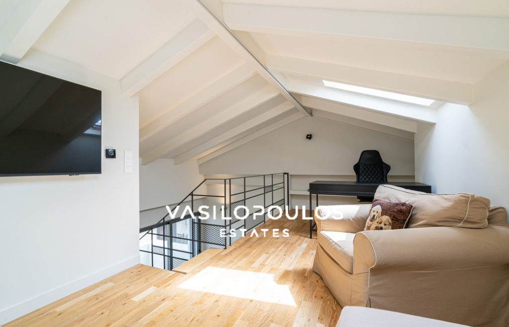 Ο κύριος χώρος της μεζονέτας αναπτύσσεται στον 2ο όροφο με ενιαίο καθιστικό–τραπεζαρία, open plan κουζίνα τελευταίας τεχνολογίας, wc επισκεπτών και μεγάλες βεράντες που «ανοίγουν» στον ορίζοντα. Στον 3ο όροφο βρίσκονται δύο ευρύχωρα master υπνοδωμάτια, ακόμη ένα υπνοδωμάτιο με εσωτερική σοφίτα και επιπλέον μπάνιο, δημιουργώντας ένα λειτουργικό περιβάλλον ιδανικό για οικογένεια.