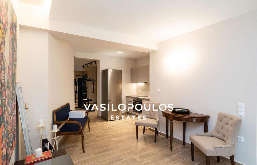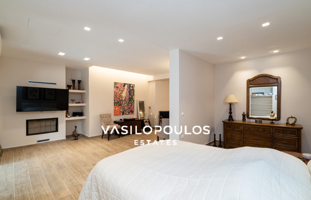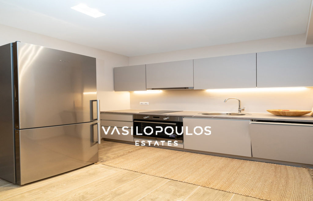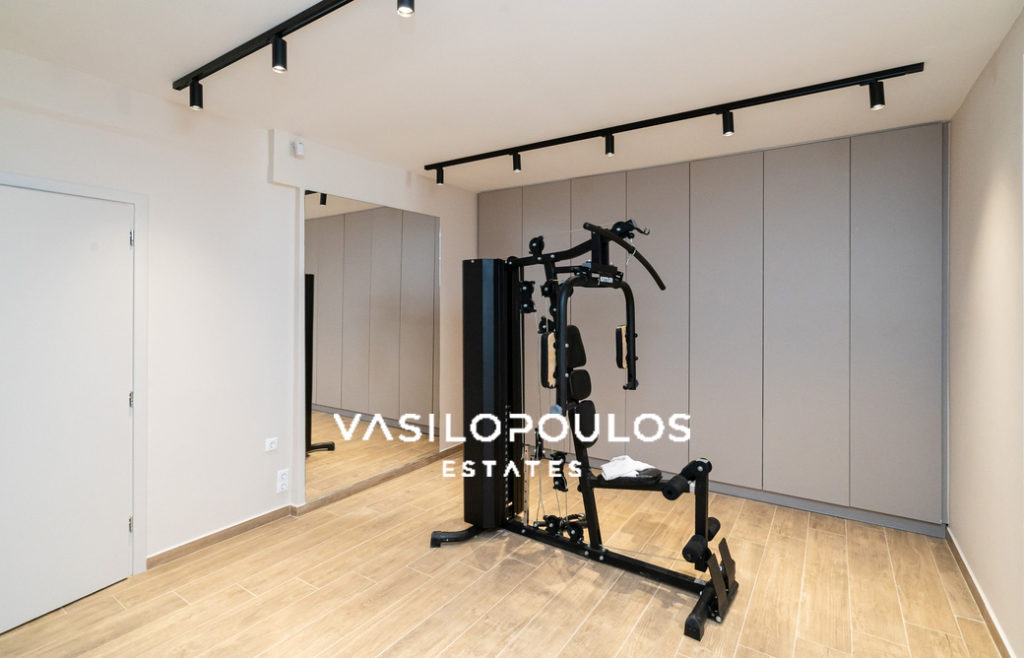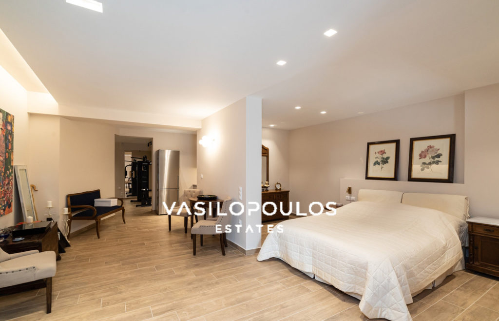 Το ανεξάρτητο διαμέρισμα στο υπόγειο διαθέτει φυσικό φωτισμό και αερισμό και περιλαμβάνει καθιστικό με κουζίνα, υπνοδωμάτιο, γυμναστήριο, laundry room και μπάνιο. Αποτελεί ιδανική λύση για φιλοξενούμενους, προσωπικό ή χώρο εργασίας.