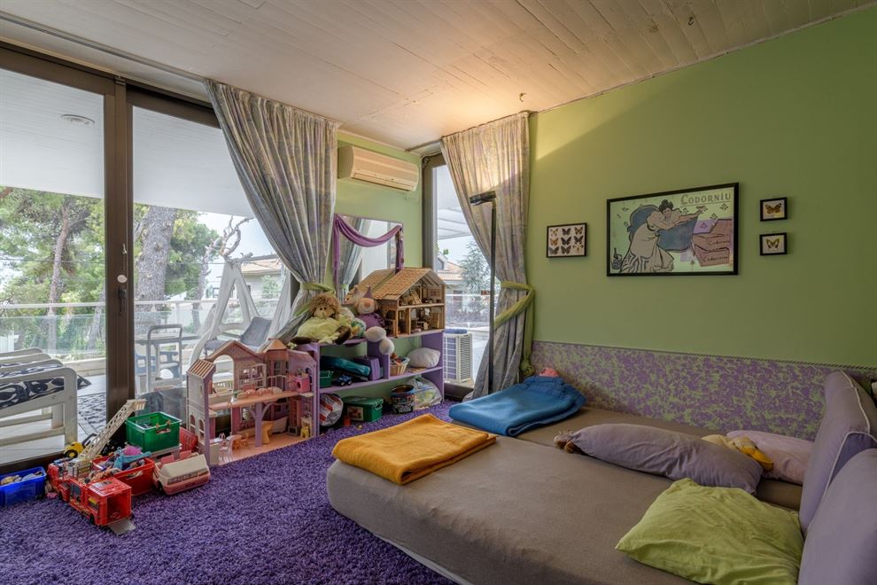 Στο ισόγειο βρίσκονται οι κύριοι χώροι υποδοχής, με ευρύχωρο σαλόνι και τζάκι, τραπεζαρία και μεγάλη, πλήρως εξοπλισμένη κουζίνα. Επιπλέον, υπάρχει δωμάτιο υπηρεσίας με μπάνιο, wc επισκεπτών και γραφείο. Ο πρώτος όροφος φιλοξενεί τέσσερα υπνοδωμάτια, το ένα master με dressing room και τρία επιπλέον μπάνια. Το playroom περιλαμβάνει τζάκι, μπάνιο, δωμάτιο υπηρεσίας με μπάνιο και laundry room, προσφέροντας ευελιξία και επιπλέον χώρο για όλη την οικογένεια.