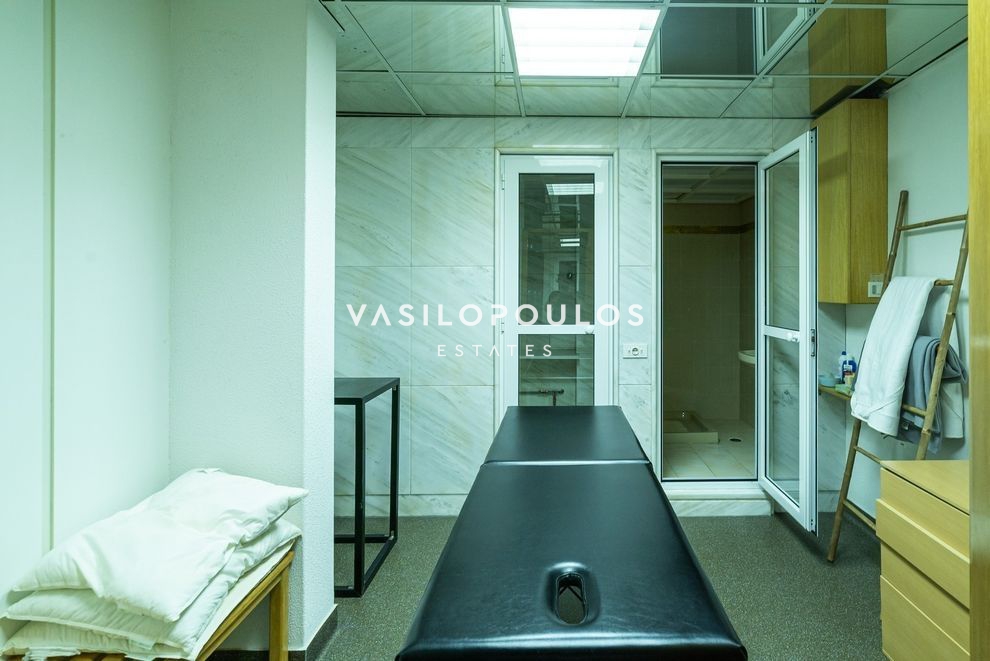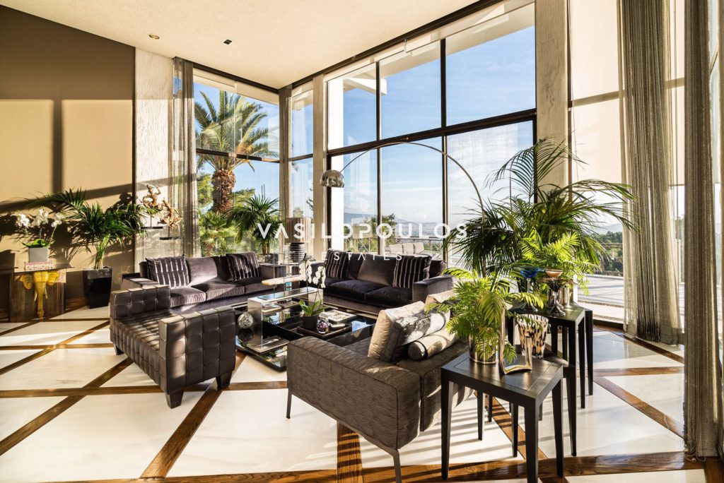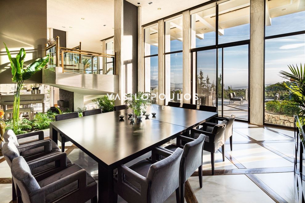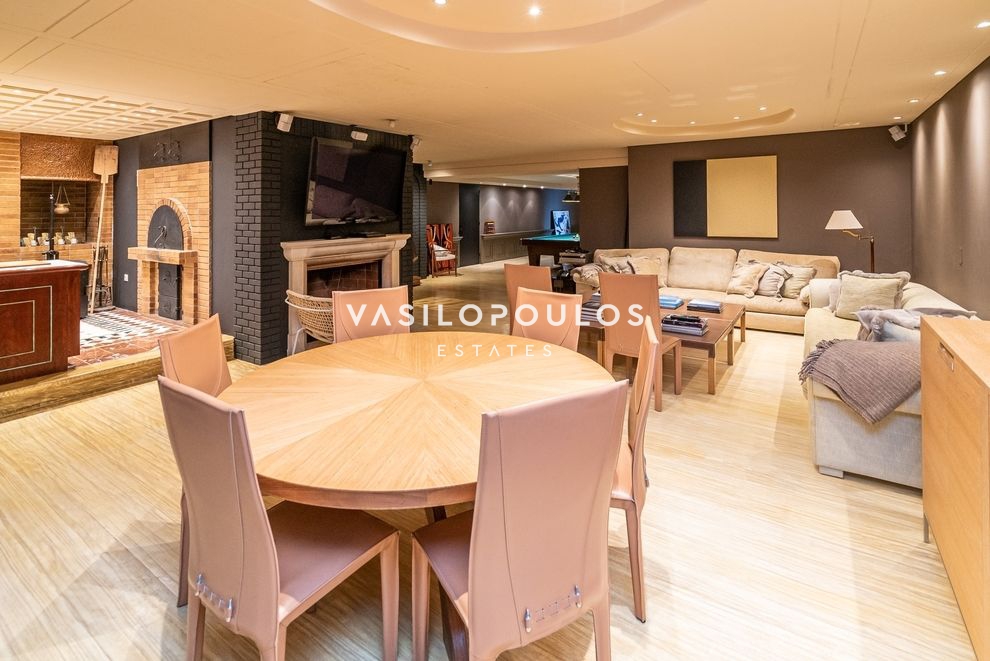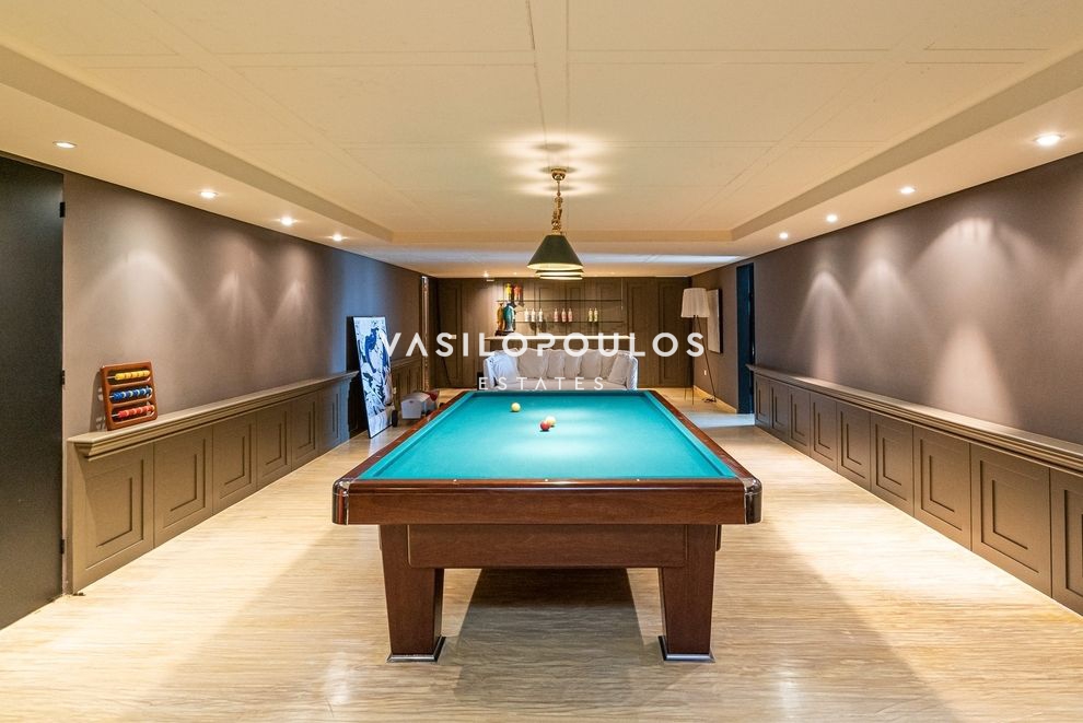 Στο χαμηλότερο επίπεδο συναντώνται καθιστικό, home cinema, χώρος μπιλιάρδου, κάβα, hammam, γραφείο και επιπλέον βοηθητικοί χώροι, δημιουργώντας έναν χώρο ψυχαγωγίας και χαλάρωσης υψηλών προδιαγραφών. Οι βοηθητικοί χώροι περιλαμβάνουν δύο staff rooms, laundry και πολλούς αποθηκευτικούς χώρους, καλύπτοντας πλήρως τις ανάγκες οργάνωσης και λειτουργικότητας. Οι μεγάλες βεράντες με ανεμπόδιστη θέα και τα όμορφα διαμορφωμένα καθιστικά εξωτερικού χώρου, σε συνδυασμό με τον προσεγμένο κήπο και την πισίνα, προσφέρουν ιδανικές συνθήκες διαβίωσης και απόλυτης ηρεμίας.