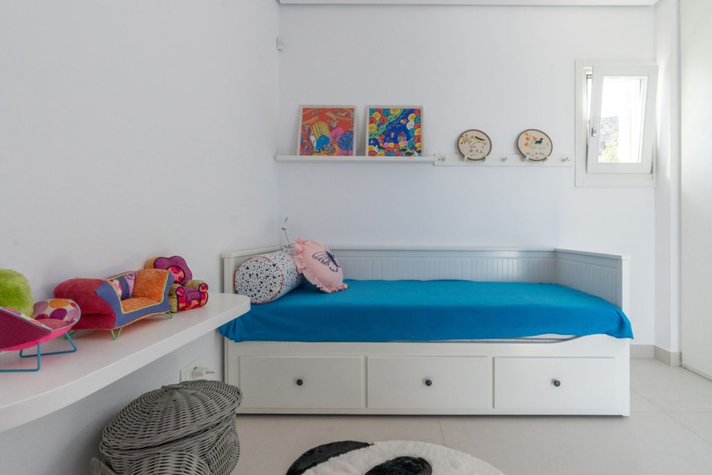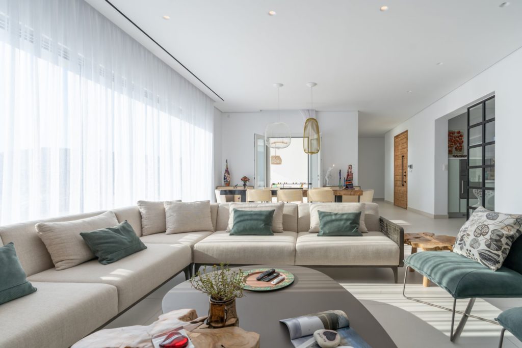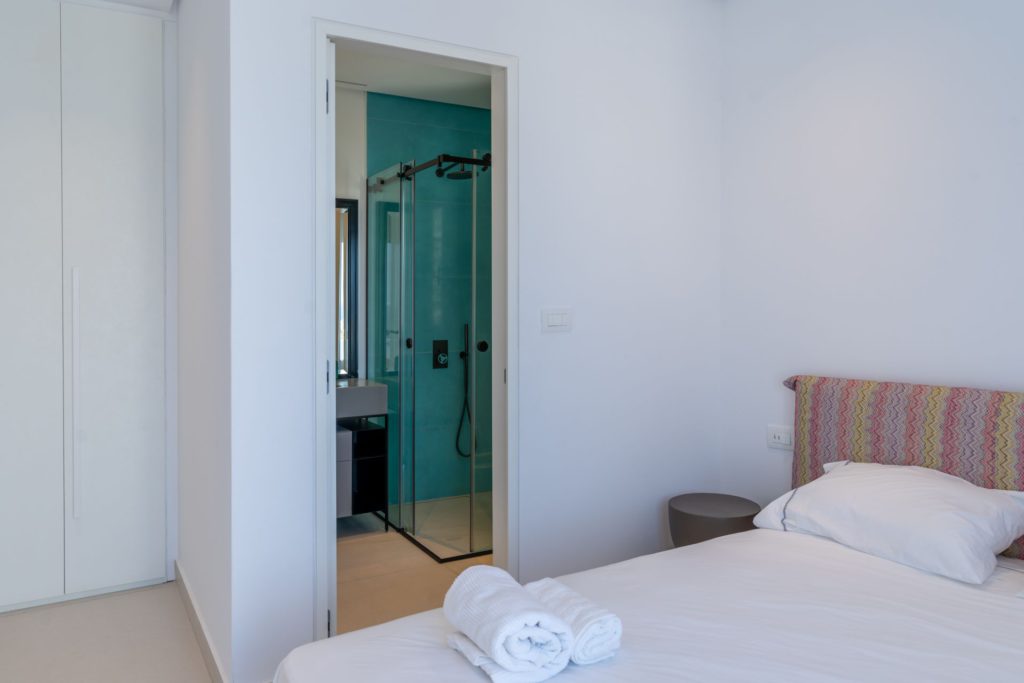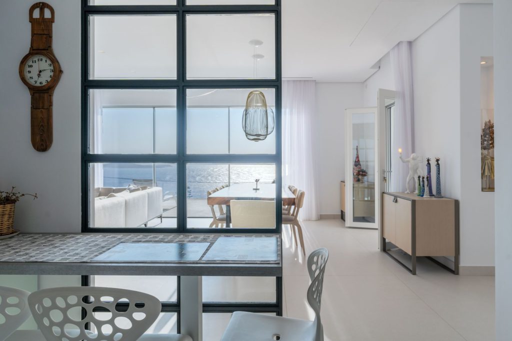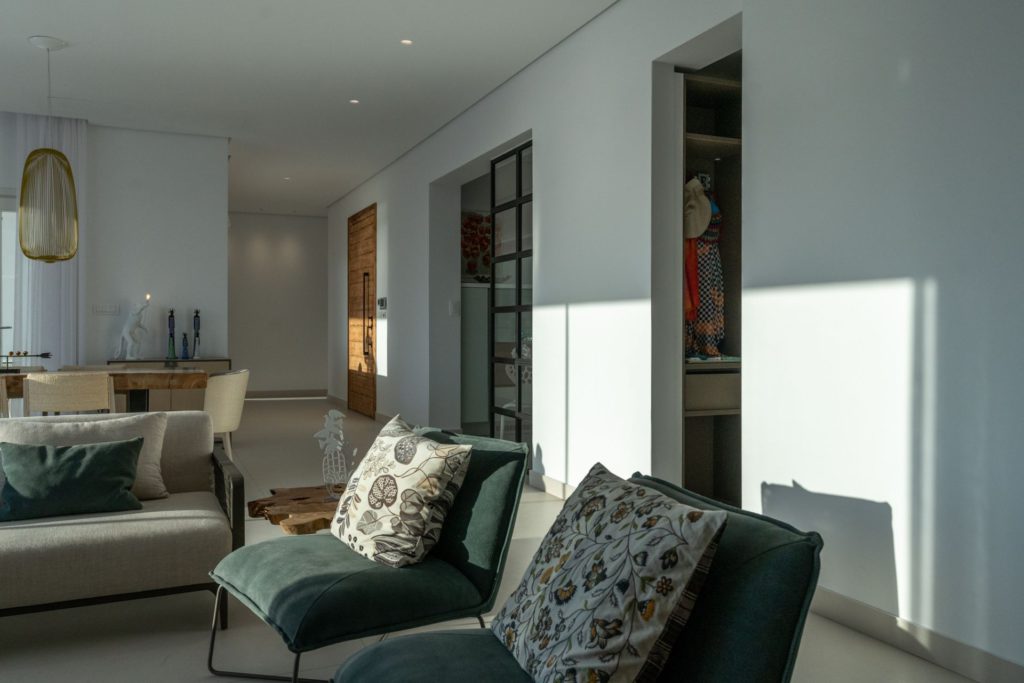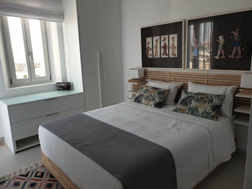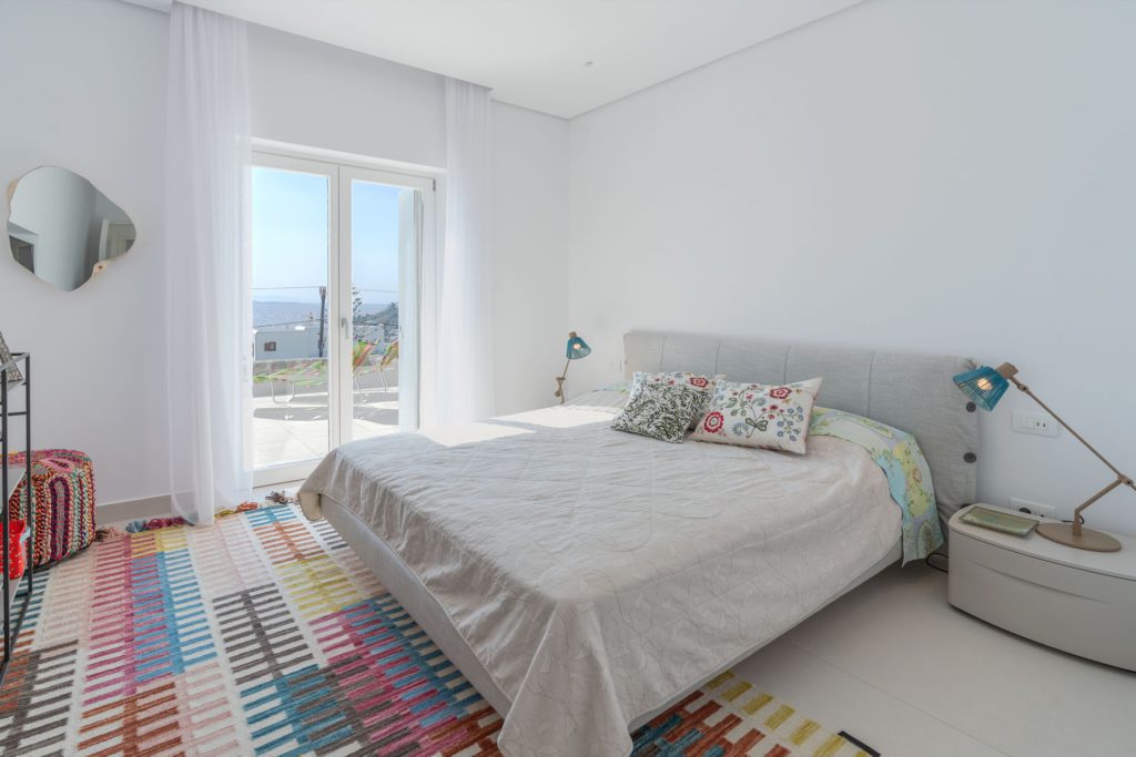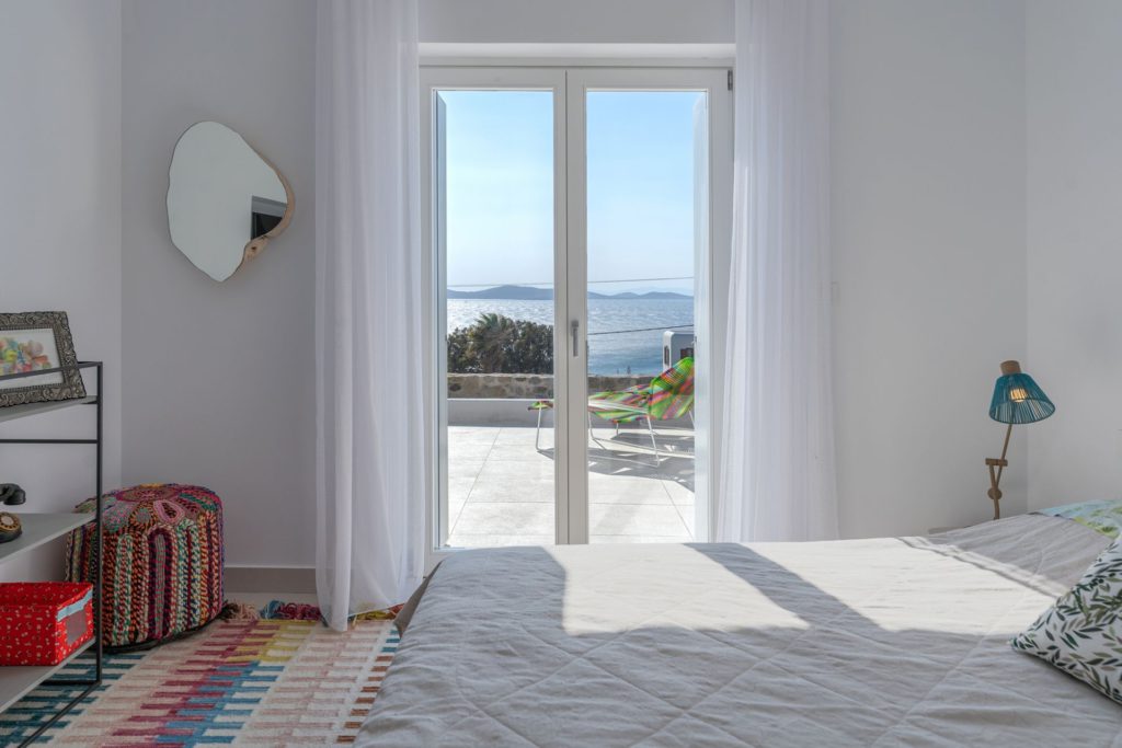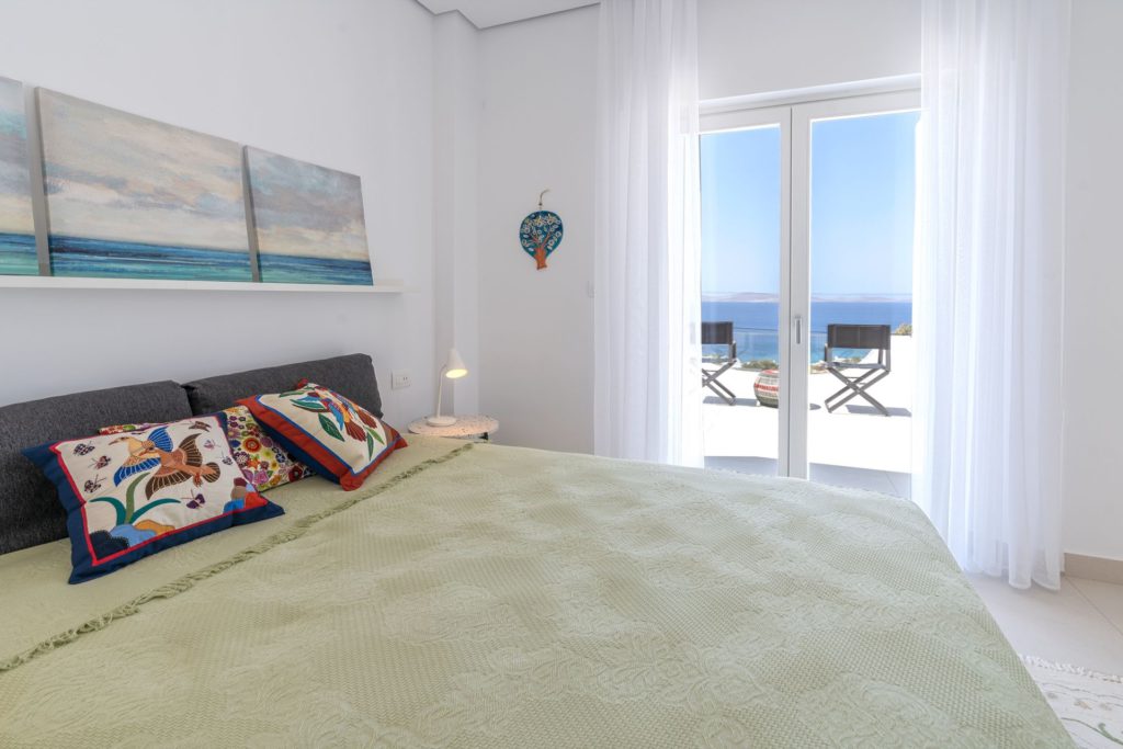 Το οικόπεδο των 5.000 τ.μ. φιλοξενεί μια εντυπωσιακή infinity πισίνα, άνετες ξαπλώστρες, καθιστικά και μια τραπεζαρία κάτω από ξύλινη πέργκολα, ιδανικά για γεύματα, κοκτέιλ ή στιγμές ηρεμίας με θέα το ηλιοβασίλεμα. Ο minimal σχεδιασμός προσδίδει κομψότητα και ηρεμία, ενώ οι εξωτερικοί χώροι συνδυάζουν λειτουργικότητα και αισθητική υψηλού επιπέδου.Στο εσωτερικό, οι λευκές και φωτεινές επιφάνειες δημιουργούν ζεστή και φιλόξενη ατμόσφαιρα, ενώ οι προσεκτικά επιλεγμένες επίπλωσεις συνδυάζουν μοντέρνα αισθητική με πολυτέλεια. Τα πέντε υπνοδωμάτια με ιδιωτικά μπάνια προσφέρουν άνεση για έως 10 επισκέπτες, με κάθε χώρο να φέρει αίσθηση ηρεμίας και φινέτσας.