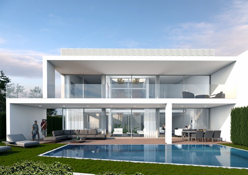 Ο εξωτερικός χώρος διαθέτει ιδιωτικό κήπο και πισίνα 40 τ.μ., ιδανική για χαλάρωση και ψυχαγωγία με πανοραμική θέα.