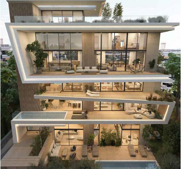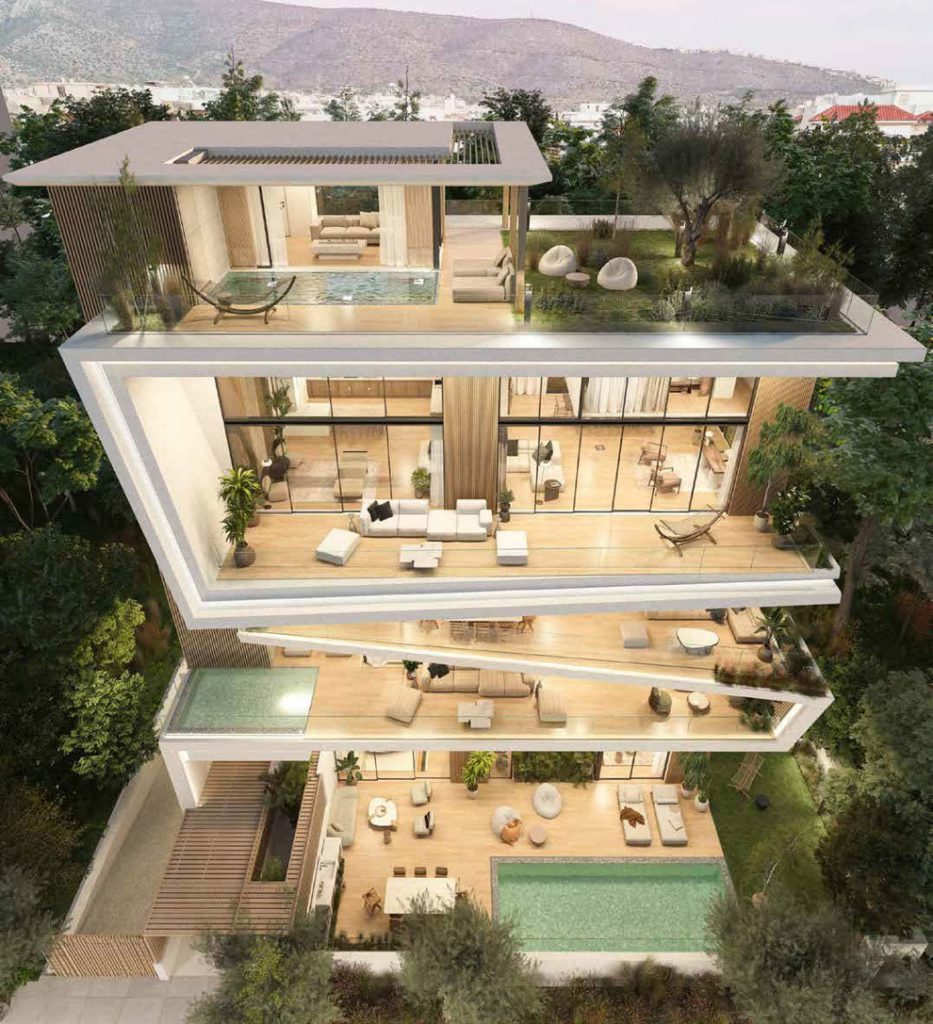 Το highlight του ακινήτου είναι η ιδιωτική πισίνα στον ψηλότερο όροφο. Με μεγάλες βεράντες που προσφέρουν ανεμπόδιστη θέα και ιδανικό περιβάλλον για χαλάρωση και κοινωνικές στιγμές. Η κατοικία έχει επίσης 3 θέσεις στάθμευσης και αποθηκευτικό χώρο.