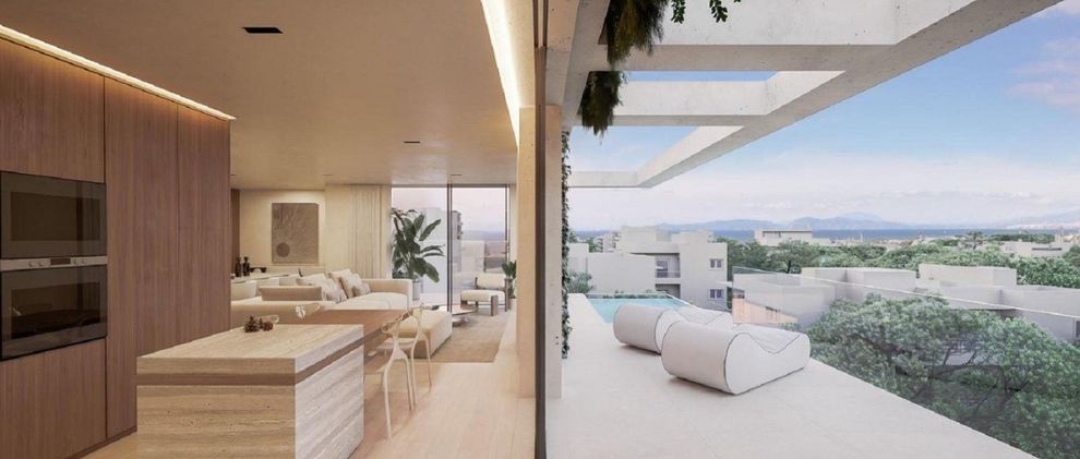 Υπάρχουν άνετοι χώροι υποδοχής με σαλόνι, τραπεζαρία και μοντέρνα κουζίνα, καθώς και ένα wc επισκεπτών για μεγαλύτερη ευκολία. Οι χώροι του σαλονιού έχουν σύνδεση άμεση με την βεράντα και την πισίνα του ακινήτου. Το μοναδικό διαμέρισμα έχει 3 master υπνοδωμάτια για μεγαλύτερη ευκολία και μέγιστη ιδιωτικότητα. Το ακίνητο έχει θέση στάθμευσης και αποθηκευτικό χώρο.